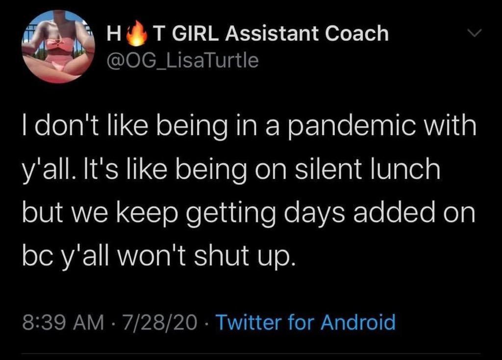These memes that I have taken from various social media sites that I visit. They help to show how some people are processing the global pandemic through the use of humor and memes to deal with their feelings of anxiety and fear for the future. I have taken part in this and often search the various hashtags for pandemic memes when I am feeling anxious about the pandemic. Many of my friends too share these kinds of memes with each other in our group chats or on their own blogs.