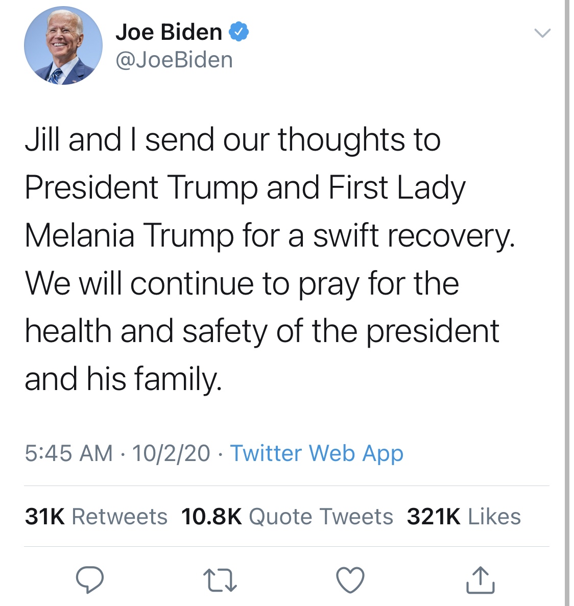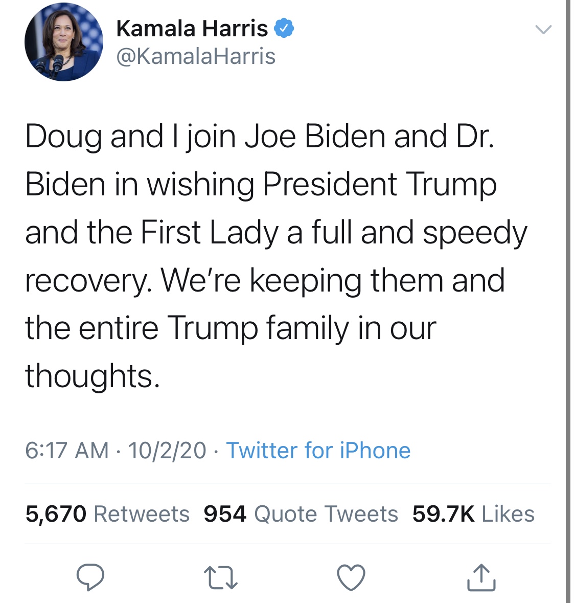 Joe Biden and Kamala Harris Wish Trump a Speedy Recovery