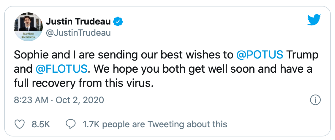 Justin Trudeau and other Canadian politicians send get-well messages to POTUS
