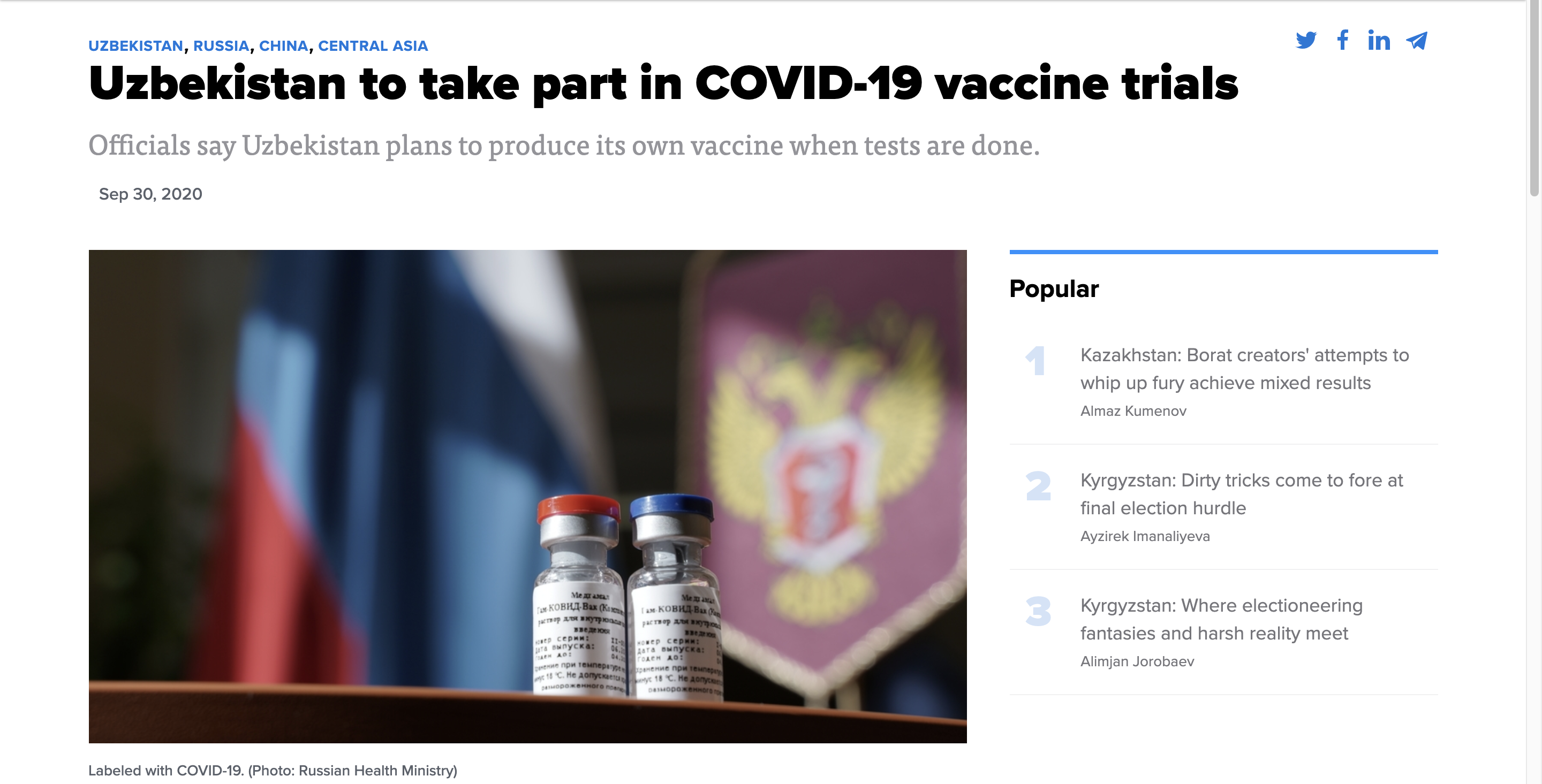 Russia secures a deal with Uzbekistan for 10s of million of vaccines. Another win for Russia. Egypt and Uzbekistan. If the vaccine ends up being dangerous or long term effects due to its rushed process what will be the consequences.