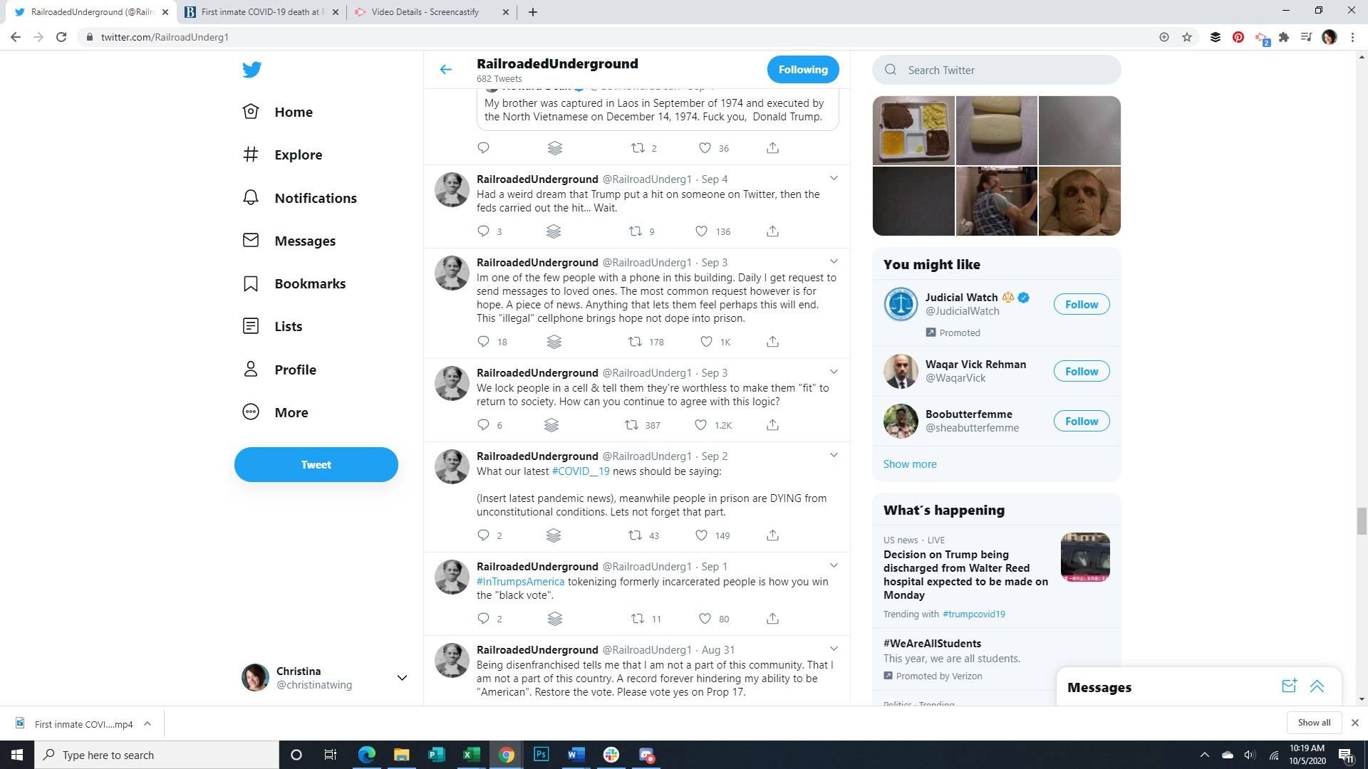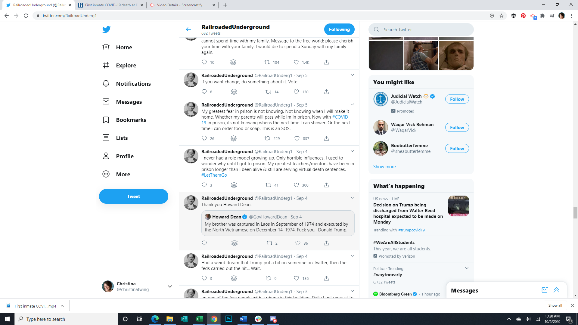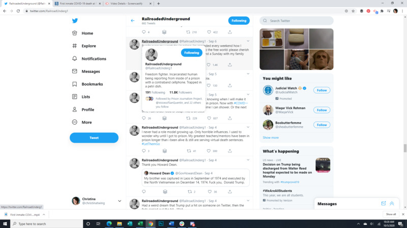 Tweets from Inside a Prison 08/30-09/05/2020 by Railroad Underground