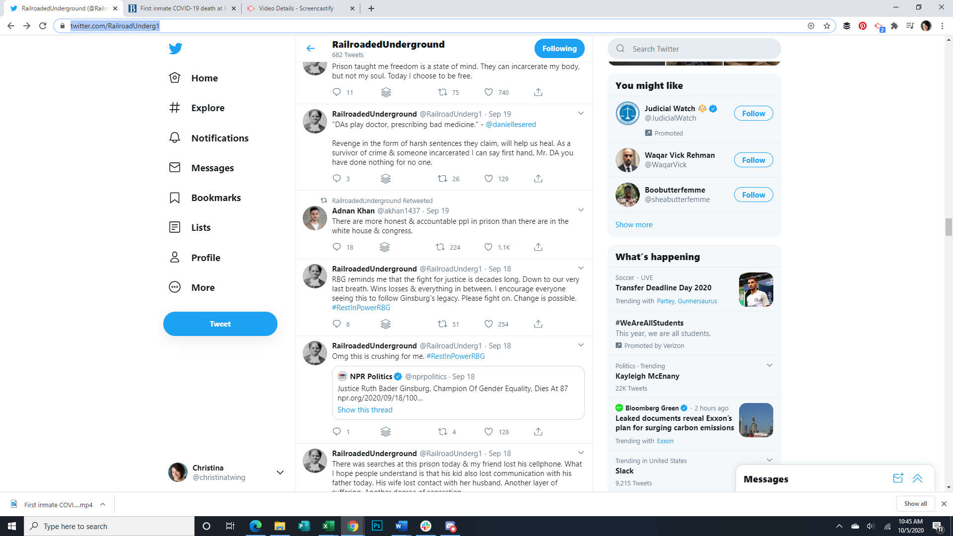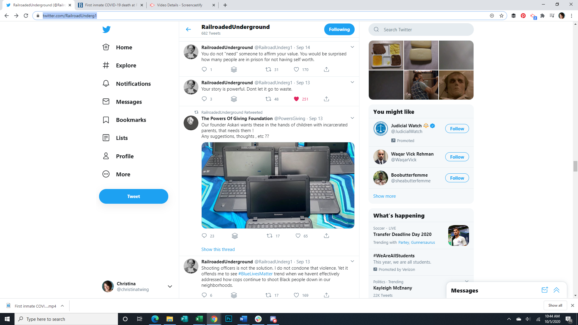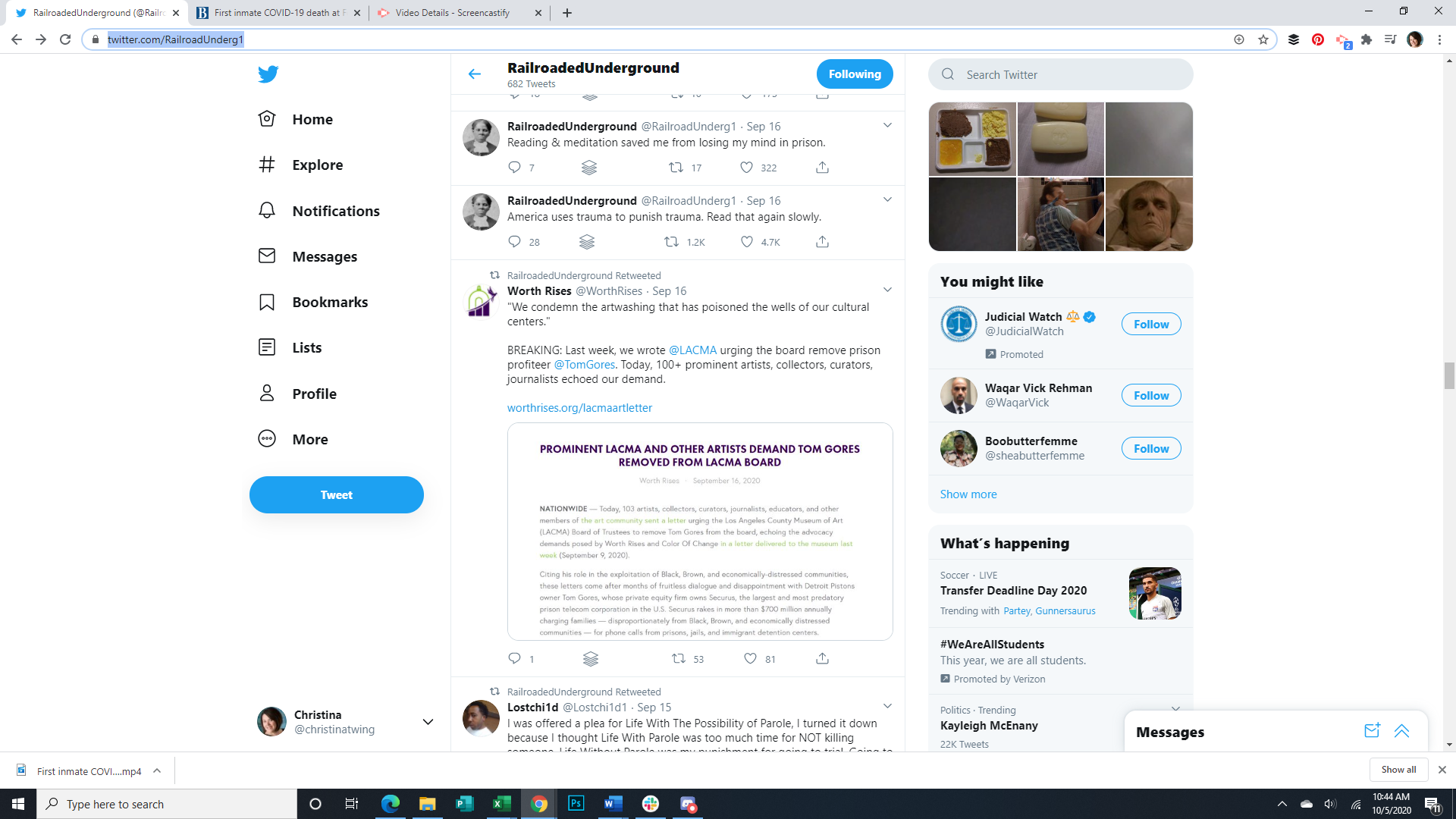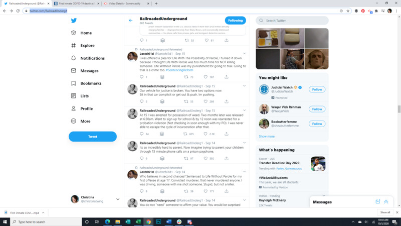 These images show the Tweets of an incarcerated person utilizing a contraband cell phone to let the outside world know about prison conditions during the pandemic. This week he talks about #BlueLivesMatter, police shootings, and violence, self worth, parenting from prison, fighting for justice, trauma, reading, meditation, protests, Ruth Bader Ginsburg's death, and district attorneys.