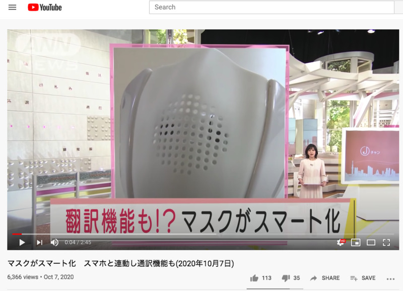 マスクがスマート化 スマホと連動し通訳機能も(2020年10月7日) - The mask has become smarter. The interpreter function is also linked with the smartphone (October 7, 2020)
