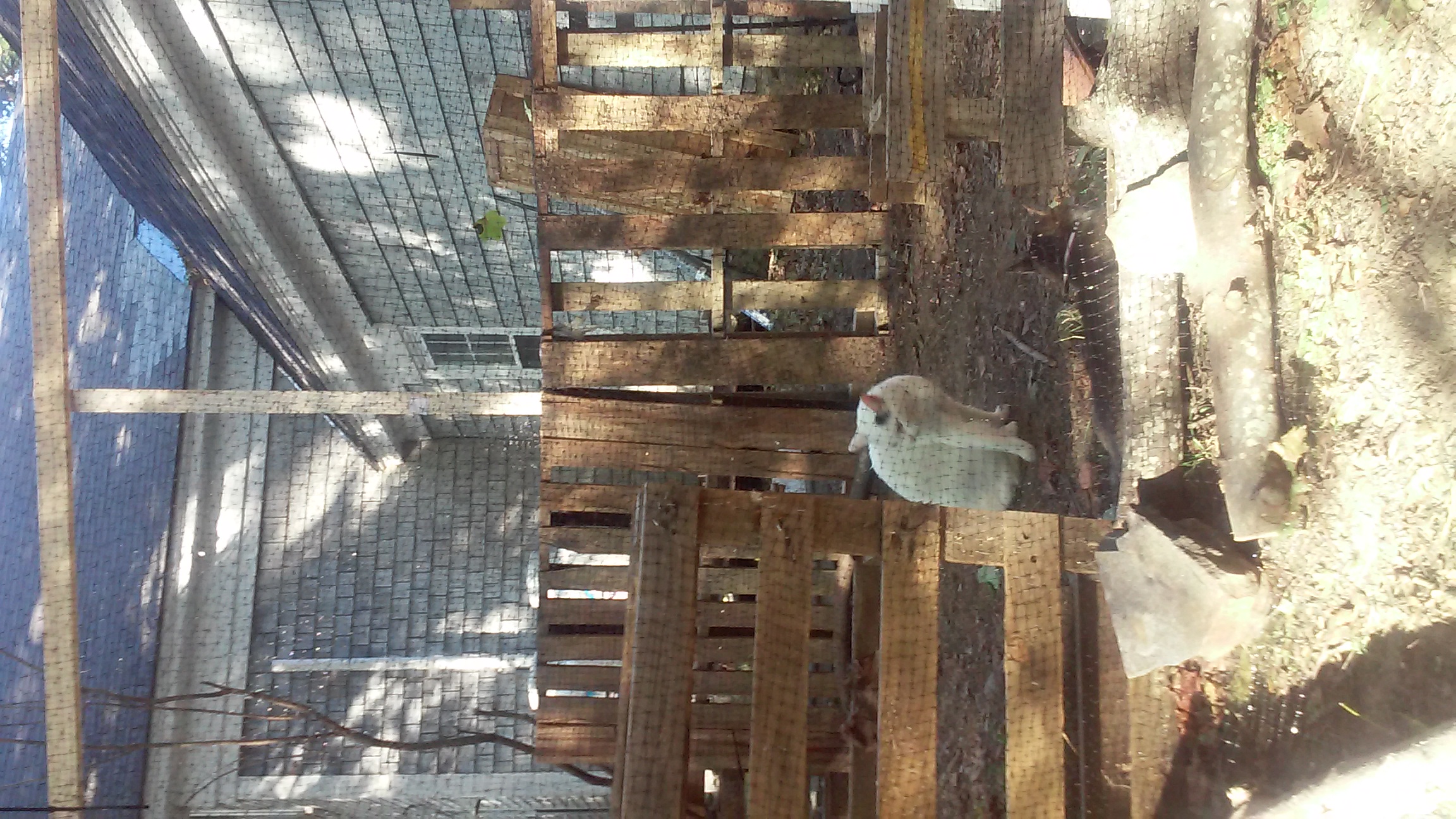 I am no carpenter, so my hands were full of splinters and I was bone-weary when I was done. The cats went into their catio with excitement, and tested every corner of it to see if they could escape. I followed them with my stapler and my zip ties, tightening it up. They are not completely satisfied with the catio, but it is a whole lot better than nothing. I've started to supplement by taking them for walks on leashes in the front yard, and who knows, when the next really toxic news cycle comes around, I may well build a bigger, better catio. I want to be a responsible pet owner, and protect the environment-maybe I can't control the terrible big things that go wrong, but I can do just a little bit that I can in my own way.