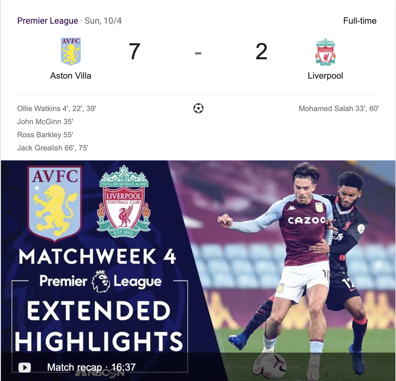 Liverpool lost 7-2. The biggest in franchise history. Perhaps its the hangover from winning the Leauge? I mean it only did end July 26th. To Aston Villa?... Honestly, only reason this happens is because of COVID-19.