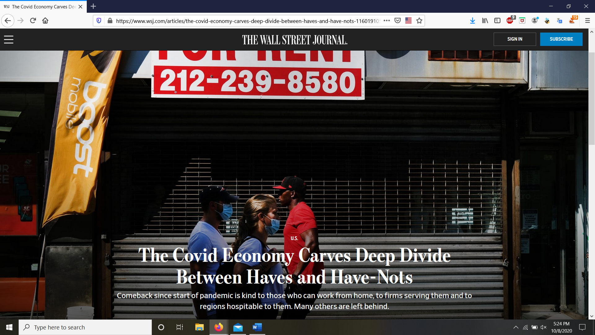Large portions of the population are struggling economically due to the pandemic but others are secure in their jobs. This is leading to a deepening inequality between groups. This is important to me as it gives those of us who have been lucky during this pandemic with a different viewpoint