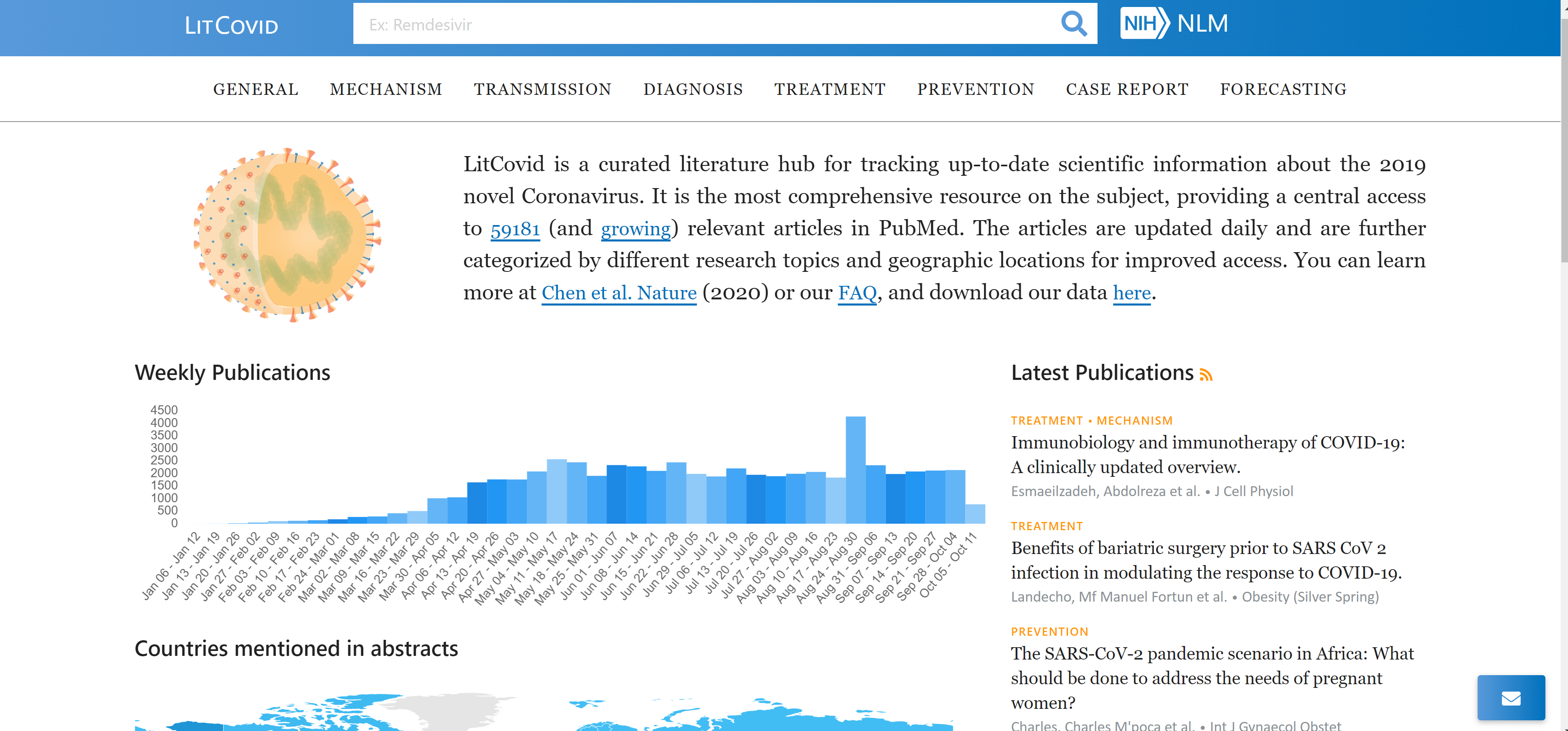 LitCovid is a website created by the NIH to provide free access to all academic papers and studies published to PubMed about COVID-19. The database makes it easy to search for specific types of studies, and is broken down into different categories (such as mechanism, transmission, prevention, and forecasting). It is quite jargon-heavy since it is a collection of academic papers, but can be really useful for learning more about the disease.