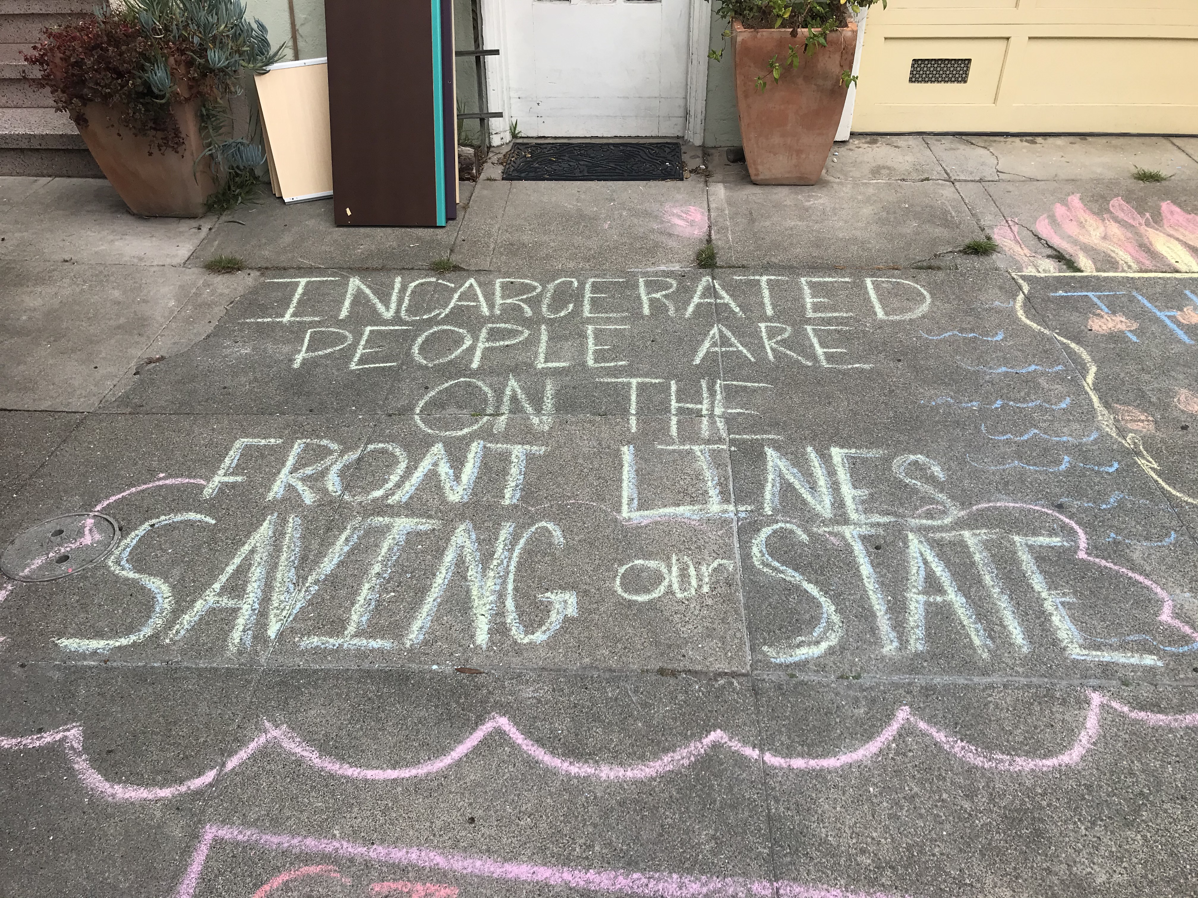 There have been over 8,000 fires in California during 2020, and CalFire has been short staffed due to COVID-19 lockdowns at prison facilities. Inmates and typically make up 40% of the CA's firefighters, and this piece of sidewalk art drew attention to the incarcerated people risking their lives to stop the fires.