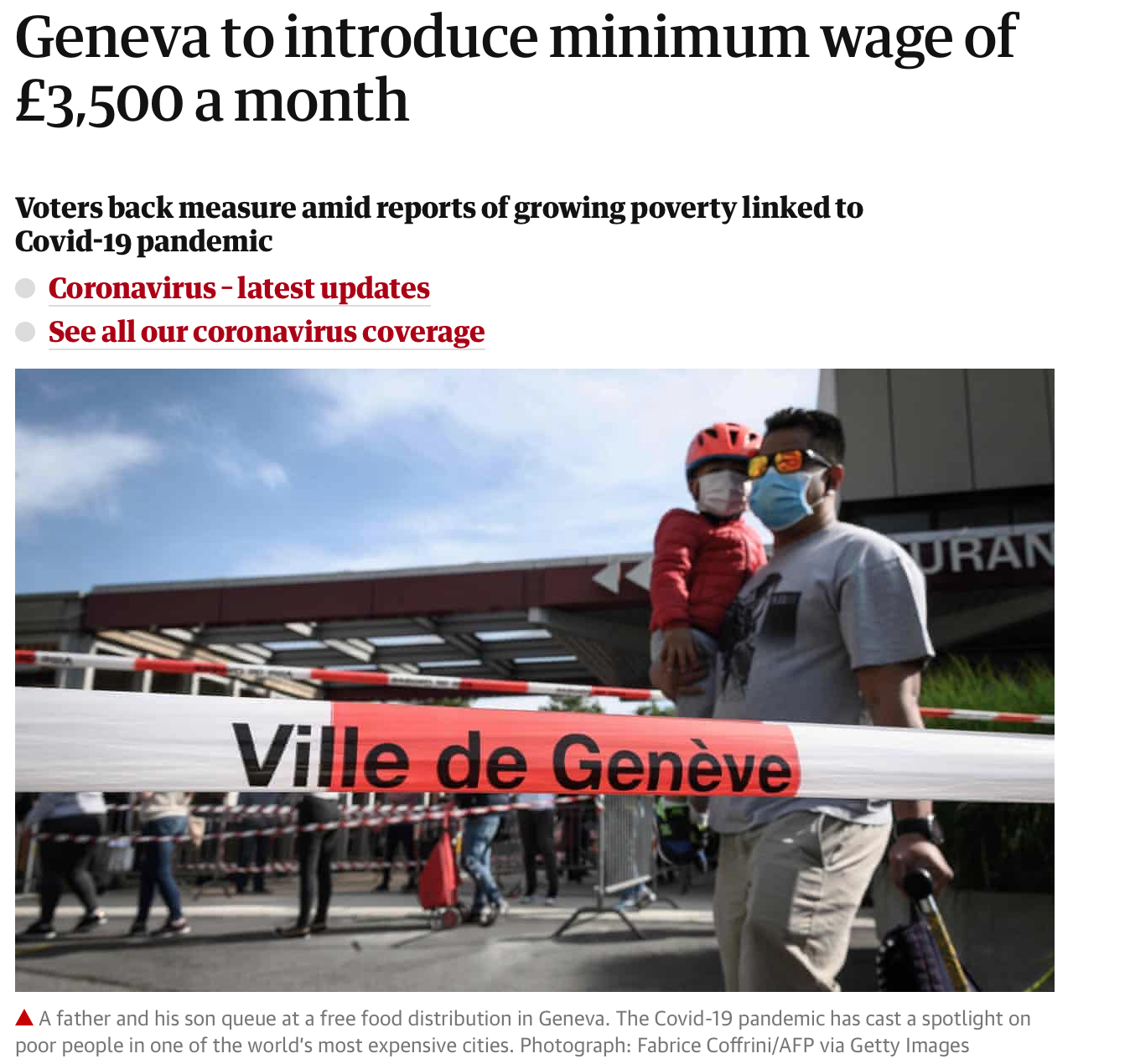 Geneva to Introduce a monthly 4,086 Swiss francs minimum wage due to Covid-19