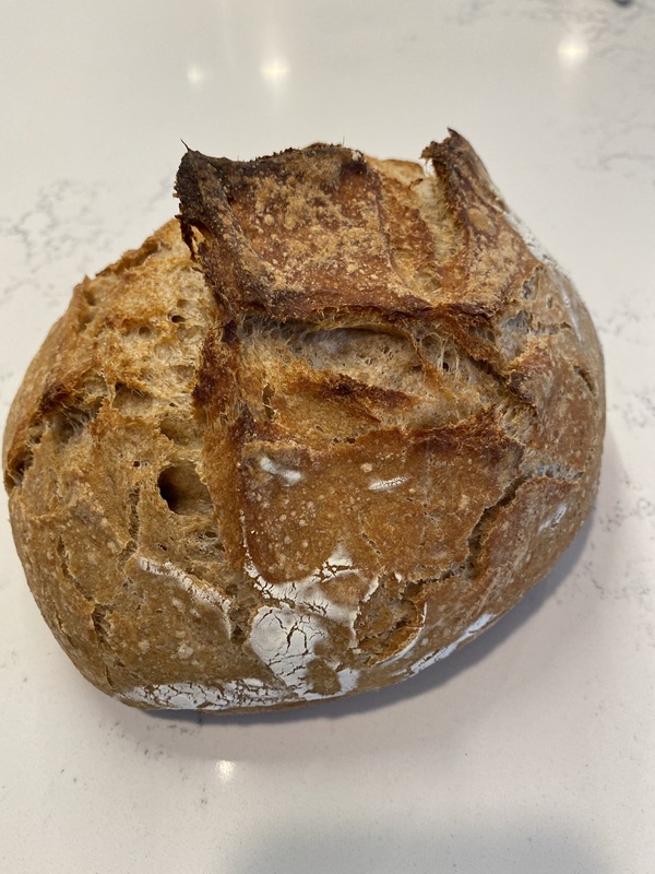 The pandemic caught me unprepared in many ways. I did not expect to run out of flour or yeast. I regularly bake rolls, muffins, cookies, and other treats several times a week. Just a day before New York shut down, I was at my local wholesale club stocking up on freezer items and canned goods, but could not find yeast or flour. The flour and yeast shortage was real and lasted for months in New York. Sourdough bread recipes started to circulate and I realized it was time to break out our food storage. As a member of the Church of Jesus Christ of Latter-day Saints, I have approximately a year's worth of dry canned whole wheat in my basement. My husband started the sourdough starter. As a the scientist in our family, I figured he would be up to the challenge of experimenting with a starter. After two weeks of tending his starter, he pulled out the wheat grinder. The grinder loudly screamed through the house as a fine flour sifted through the blades. A warm, homey smell settled in the kitchen. Then, he set about making the bread--a twenty-four hour affair. The tang of the starter smelled promising. The last hour of baking we smelled the rich smell of the bread baking in the hot oven. When he pulled it out, we could hardly wait to taste it. The jagged dark crust had the hallmarks of an artisanal loaf of bread. It smelled so good, earthy and hearty. After it cooled, he sliced the bread, cracking through the rough crust into the perfectly textured inside. The flavor was perfectly tangy, with a gorgeous whole wheat texture. Before the pandemic, my husband worked long hours at his lab and would never have had the time to make a loaf of bread that required so many steps and 24 hours. And before, we never had the need to make a starter or to use our food storage wheat.