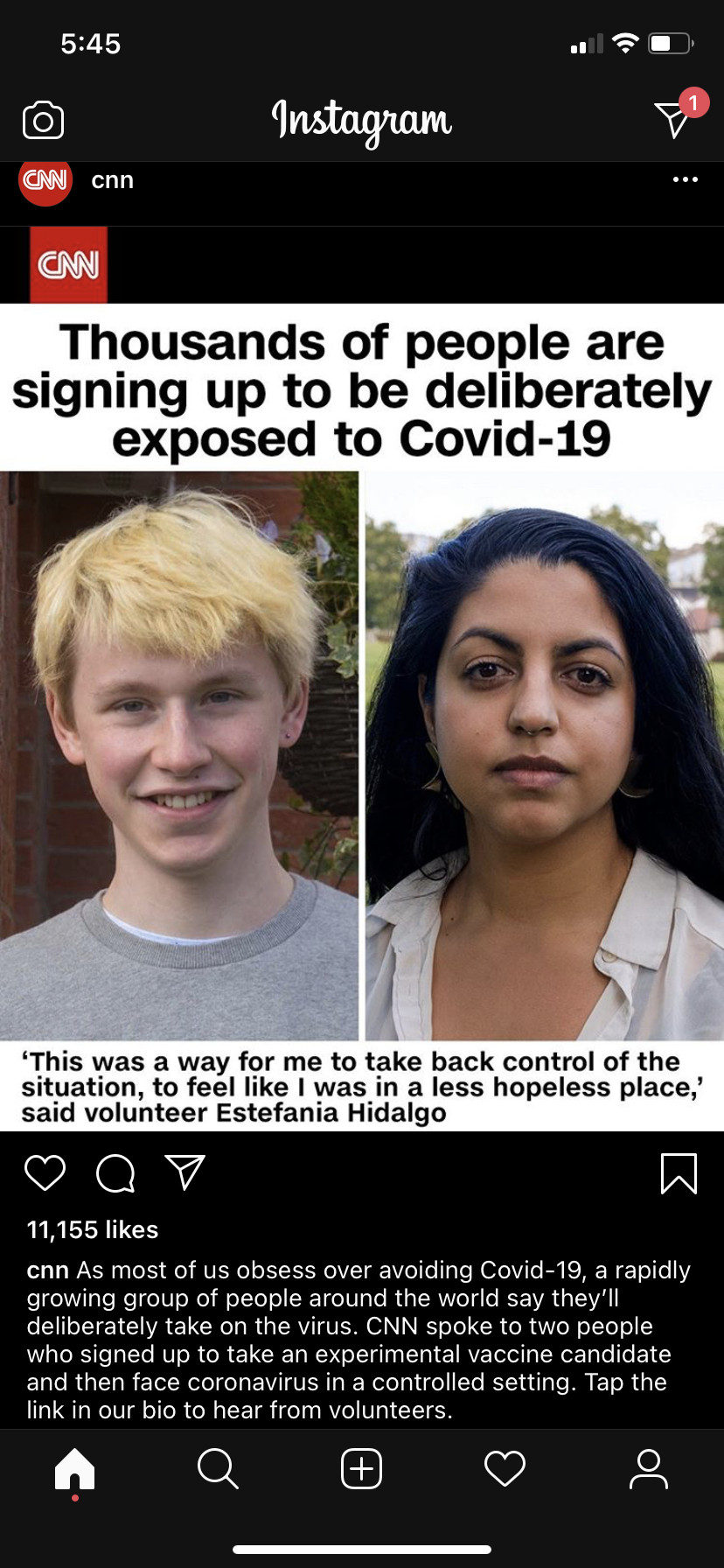 I found this CNN article really interesting. The best part was the comment section. It’s mixed feelings with some saying these people are essentially taking one for the team while others are saying these people are an extreme version of anti-maskers.
