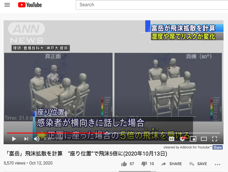 「富岳」飛沫拡散を計算 “座り位置”で飛沫5倍に(2020年10月13日) - "Tomitake" calculated that the depending on the position of the seat, the droplet could be 5 times more (October 13, 2020)
