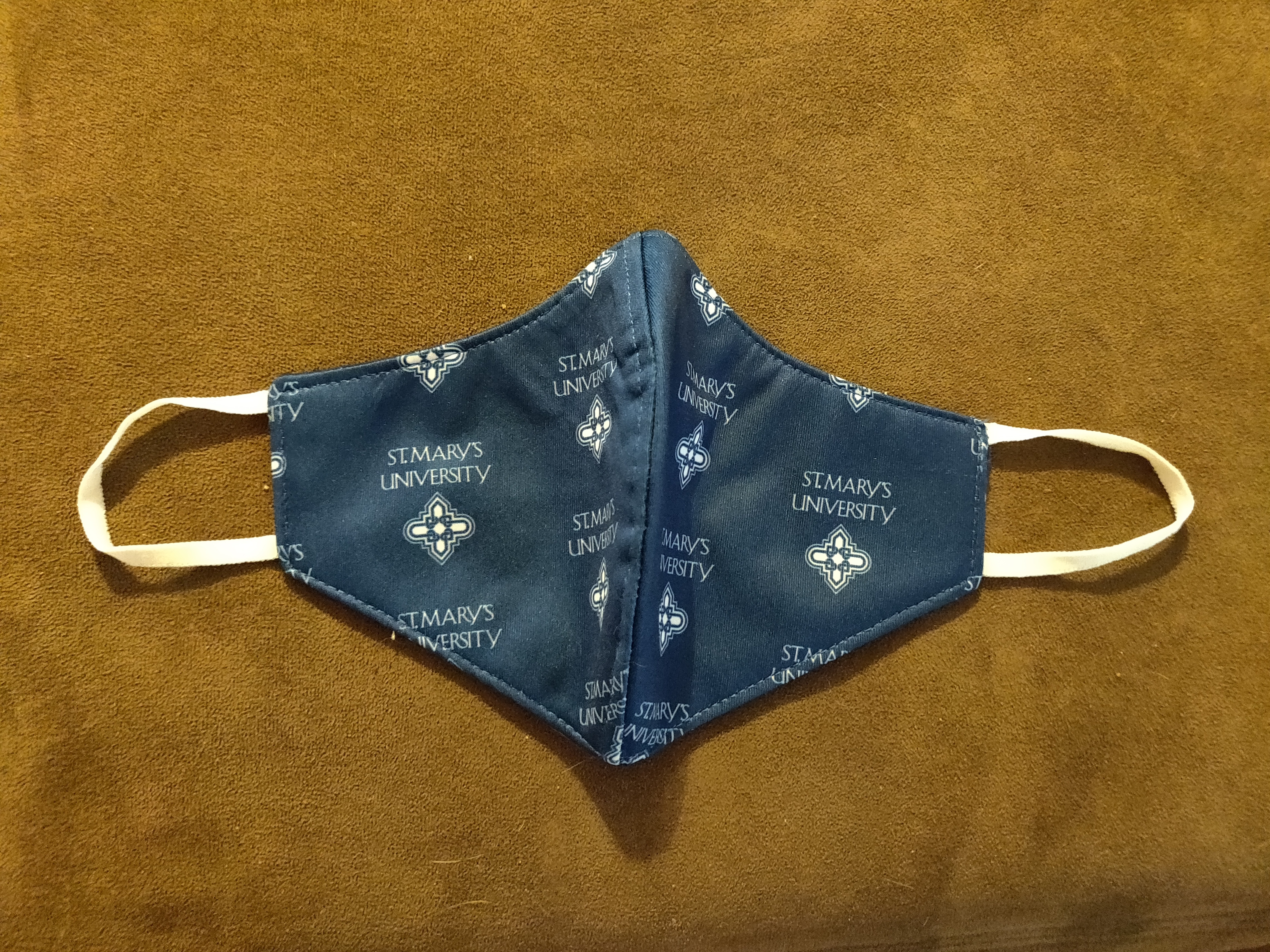 As a first generation college student I had no idea what to expect when it came to grad school. My parents had never done anything close to it and could offer me no advice, I was essentially flying blind when it came to applying and finally attending grad school. My program did it’s best to make me feel at home but I was still nervous, what if I didn’t belong here? What if my imposter syndrome was right? These anxieties bothered me for the month leading up to school starting in the fall of 2020. However, the university I am attending, St. Mary’s, provided us with these high quality masks in order to protect us and others during the pandemic. It made me feel more welcome, like I belonged. This is the best mask I have and the only one that I use regularly. It’s emblazoned with the name of the school and is a beautiful blue color. Despite all my fear and anxiety it’s nice to know that the school cares enough to give us these masks. Whenever I go out I wear this mask and advertise for my university, the place that allows me to study the things I love with people who love them too.