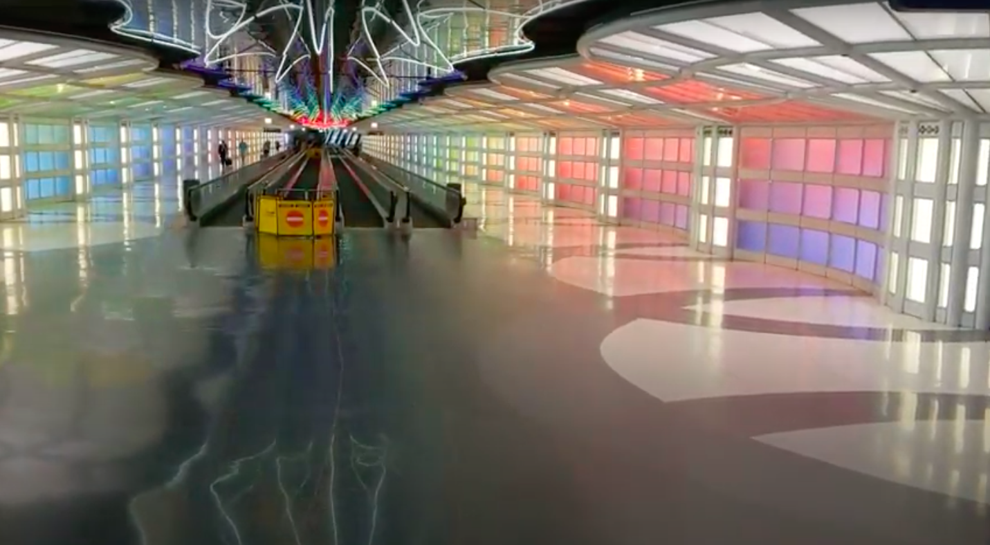 In the middle of March in 2020, flight prices dropped dramatically. I took advantage out of this circumstance by purchasing a $75 non-stop round trip ticket on United from Phoenix to Chicago. My flight to Chicago on Monday, March 16 was somewhat full, and O'Hare Airport in Chicago was less crowded than usual. However, the Coronavirus situation quickly worsened each day. I returned to the airport on Thursday, March 19 for a 10:00 AM flight to go back to Phoenix. O'hare, normally packed with people during this aviation morning rush hour, was almost like a ghost town. It had only taken a couple of days to make the big drop in passanger traffic. It was earily quiet. The colorful walkway to the satellite concourse in Terminal 1 had just a few people, making it quite easy to hear Gershwin's "Rhapsody in Blue." When I got to the satellite concourse, it felt like a library. You could walk on the concourse with barely anyone around surrounded by little to no noise. It was if you owned the place. I went to Starbucks, a favorite among travelers in the morning, where there was no line. The workers enjoyed conversating among themselves. Walking past each of the gates, I could hear near silence as most were empty or near empty, with very few gate agents working in the terminal. As someone who had taken flights out of this airport since I was little, this felt very bizzare. I knew this was historic and I took a couple of photographs along the way. One of the things I've realized about the history of the pandemic, and major historical events in general, is that it isn't necessarily about what's added, but what is removed. The sensory details do not necessarily involve jolts to your senses, but perhaps the opposite. Like Lower Manhatten after the collapse of the World Trade Center, sometimes what you may sense during major historical events is near silence. No one on my flight that day needed to point out the sheer gravity of the situation; the silence spoke a thousand words.