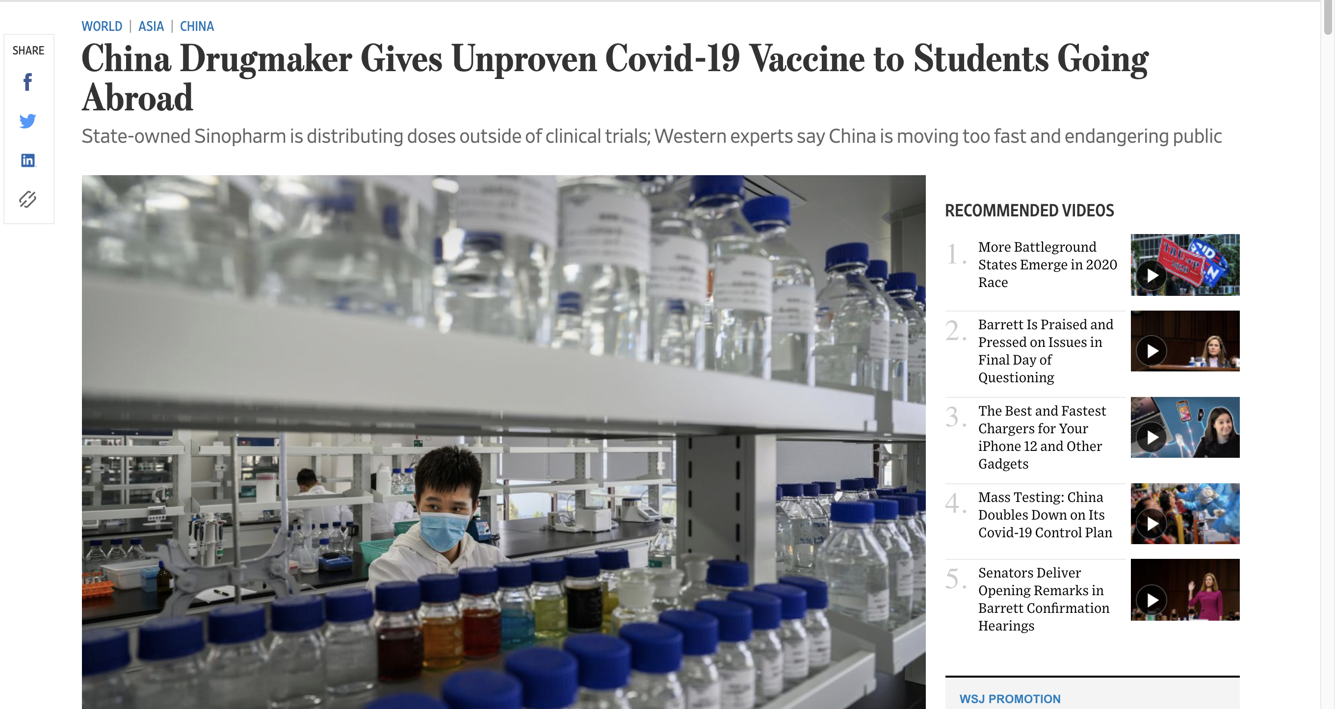 One day this will be the U.S. This was extremely fast to produce a vaccine. Less then 1 year. Incredible how medicine has transformed. Can we trust China? We have been fed constant doses of fear. China and Russia are the enemy per U.S propoganda. I don't plan on being one of the first to take the vaccine. How many people will rush to take it?