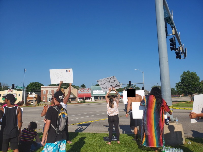 Following the death of George Floyd, there were protests in many major cities. There also were protests in small rural towns as well. Camdenton is a tourist town near the Lake of the Ozarks in Missouri. Protesters were at the main intersection in town, in front of the courthouse. Here, there was no standoff with police. During the time I was there, I only saw them drive by. Many shared stories of times they experienced racism, we also sang and chanted.