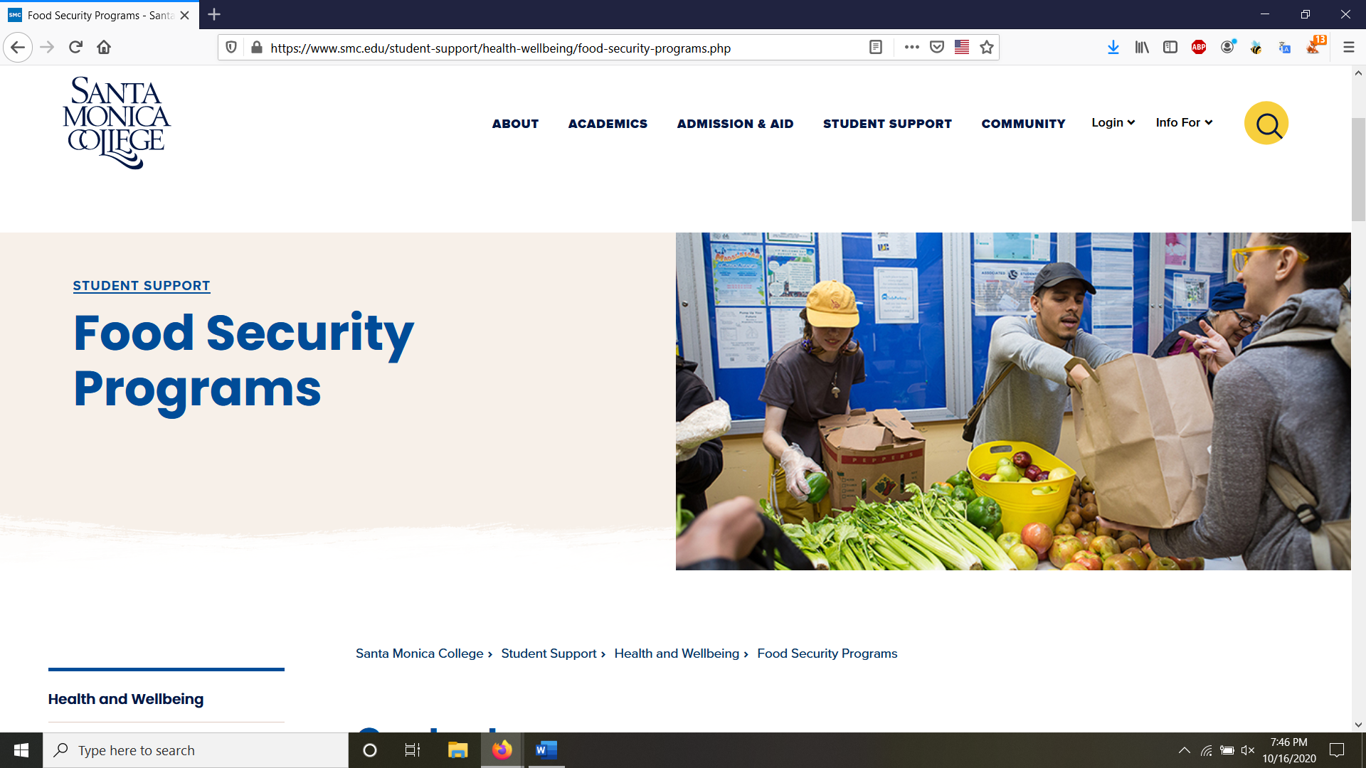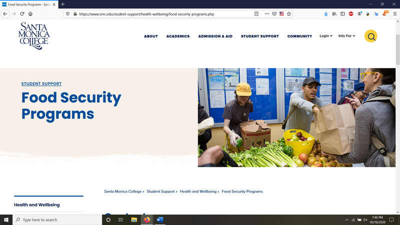 After the pandemic happened, I started volunteering at the Santa Monica College Food Pantry. Every Wednesday, we give produce, dairy, eggs, meat, and dry goods to our students in need. It’s all amazing and fresh, if we have extras, we donate it to local resources and staff. It has been great to see the community support students with food insecurities.