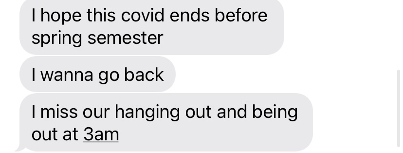 This conversation was between my best friend and i, hoping to return back to campus in a few weeks, but it never happened.