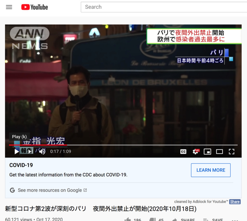新型コロナ第2波が深刻のパリ 夜間外出禁止が開始(2020年10月18日) - Paris, where the second wave of the new corona is serious, curfew begins (October 18, 2020)