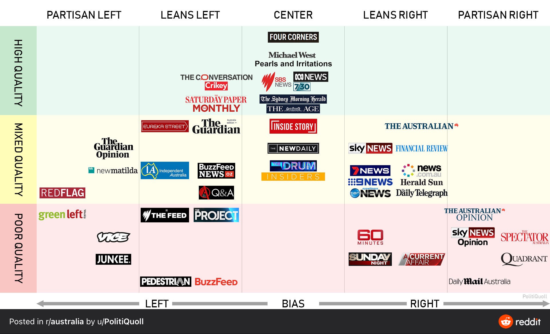 Graphic showing Australian media outlets on a political bias spectrum. Sent to me by a friend originally from reddit.