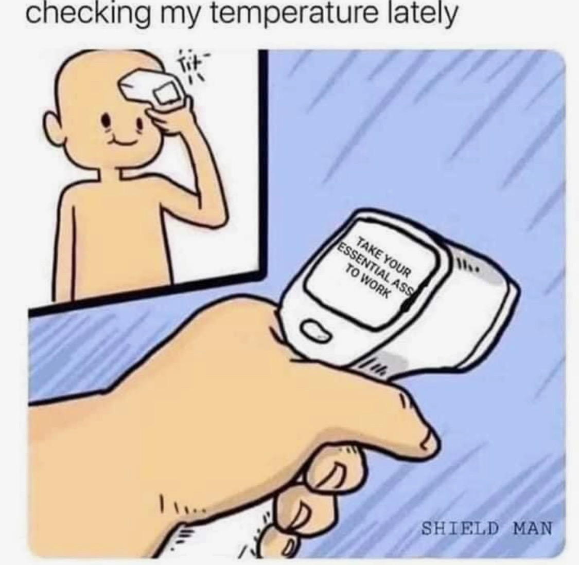 This is a meme that was sent around the COVID unity among the nurses that my sister shared with me. I thought it was a funny way the nurses make the best of their situation and try to laugh whenever they can.