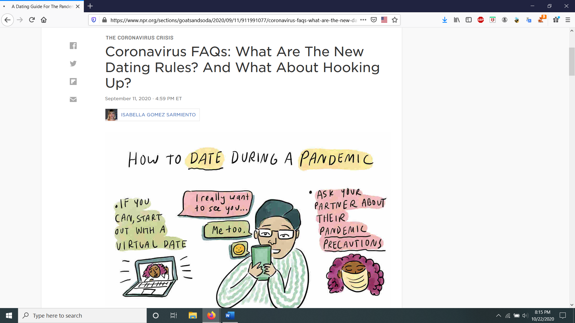 This is an article that discusses steps to take while dating someone new during the Covid-19 pandemic.