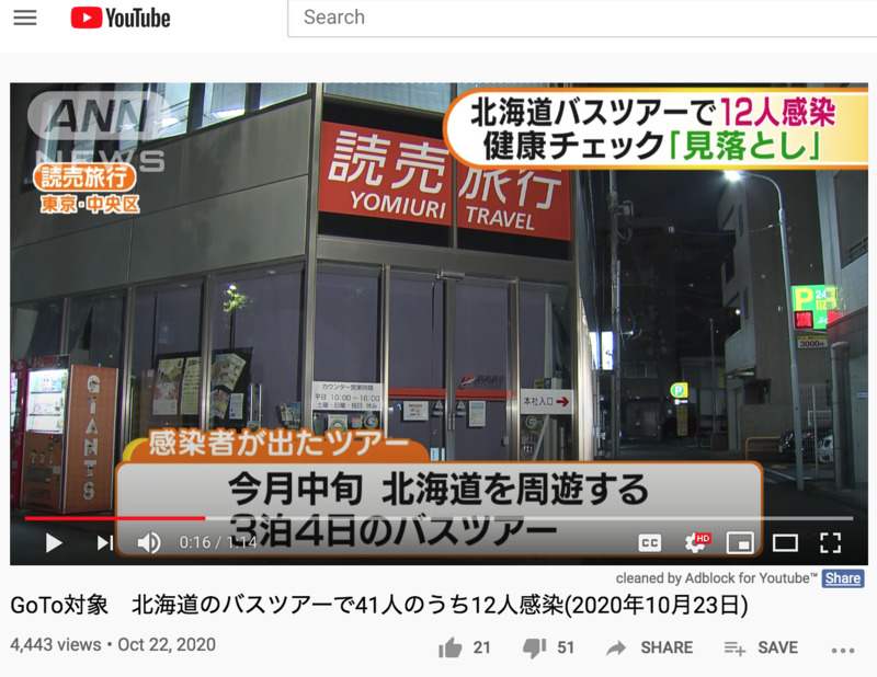 GoTo対象 北海道のバスツアーで41人のうち12人感染(2020年10月23日) - GoTo travel: 12 out of 41 people infected on a bus tour in Hokkaido (October 23, 2020)