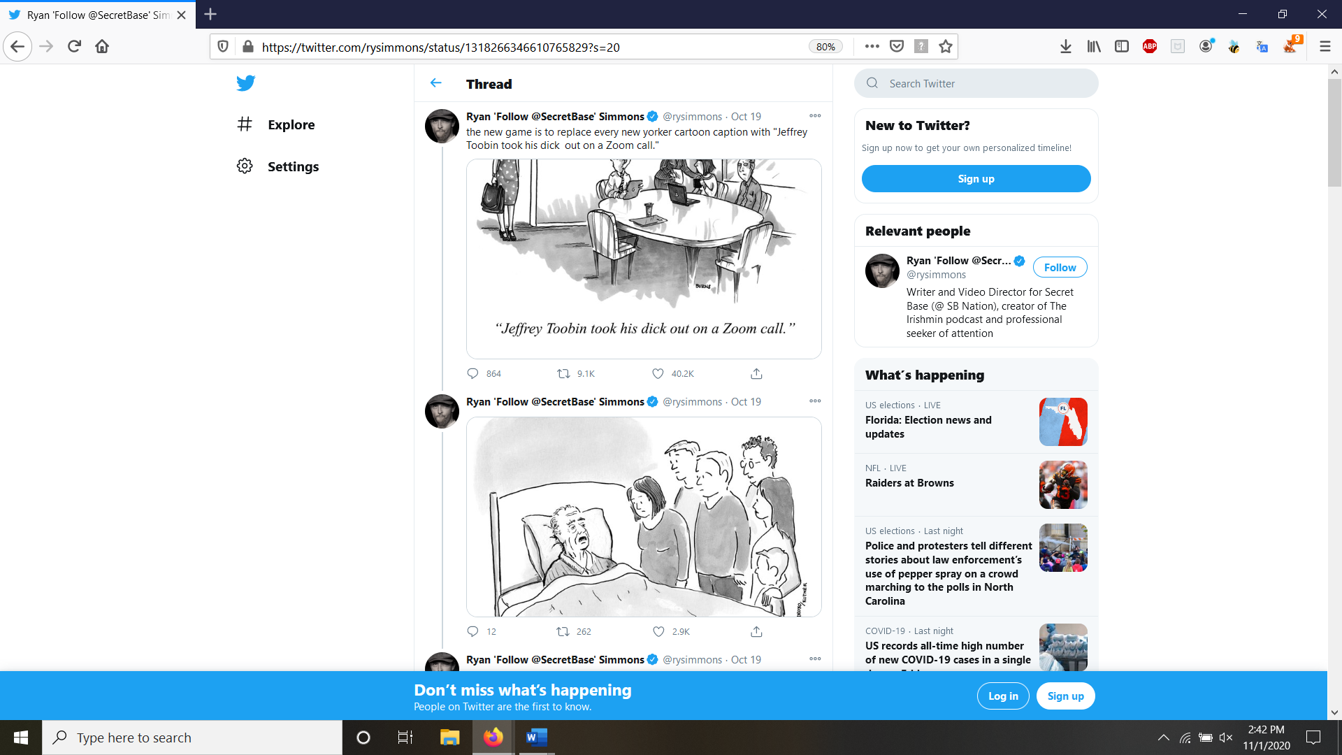 Someone who worked with the New York Times left his camera on and decided to masturbate, thinking his camera was off, showing a gross act of sexual misconduct and misunderstanding about when it is appropriate to wank off at work. Key Note: it should really be never, even if you are muted and your camera is off during a meeting, please do not pleasure yourself in the Zoom call.