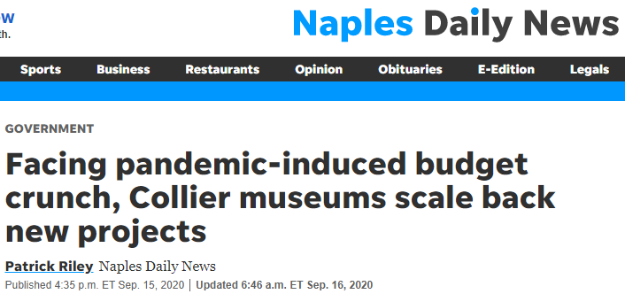 This is an article written by the Naples Daily News discussing the budget issues that Collier County’s museum system is facing due to COVID-19. Since the museum system is primarily funded through the tourism tax, the funding has plummeted about $300,000 due to the pandemic. Steve Carnell, the director of the public services department, said that the museums have taken the hardest hit - the operating budget had to be reduced by a whole quarter ($464,000). Because of this, a lot of the planned growth of the museum has been put on hold until funding can be secured. The article includes even more information on how operations in the five museums have transformed due to COVID-19.