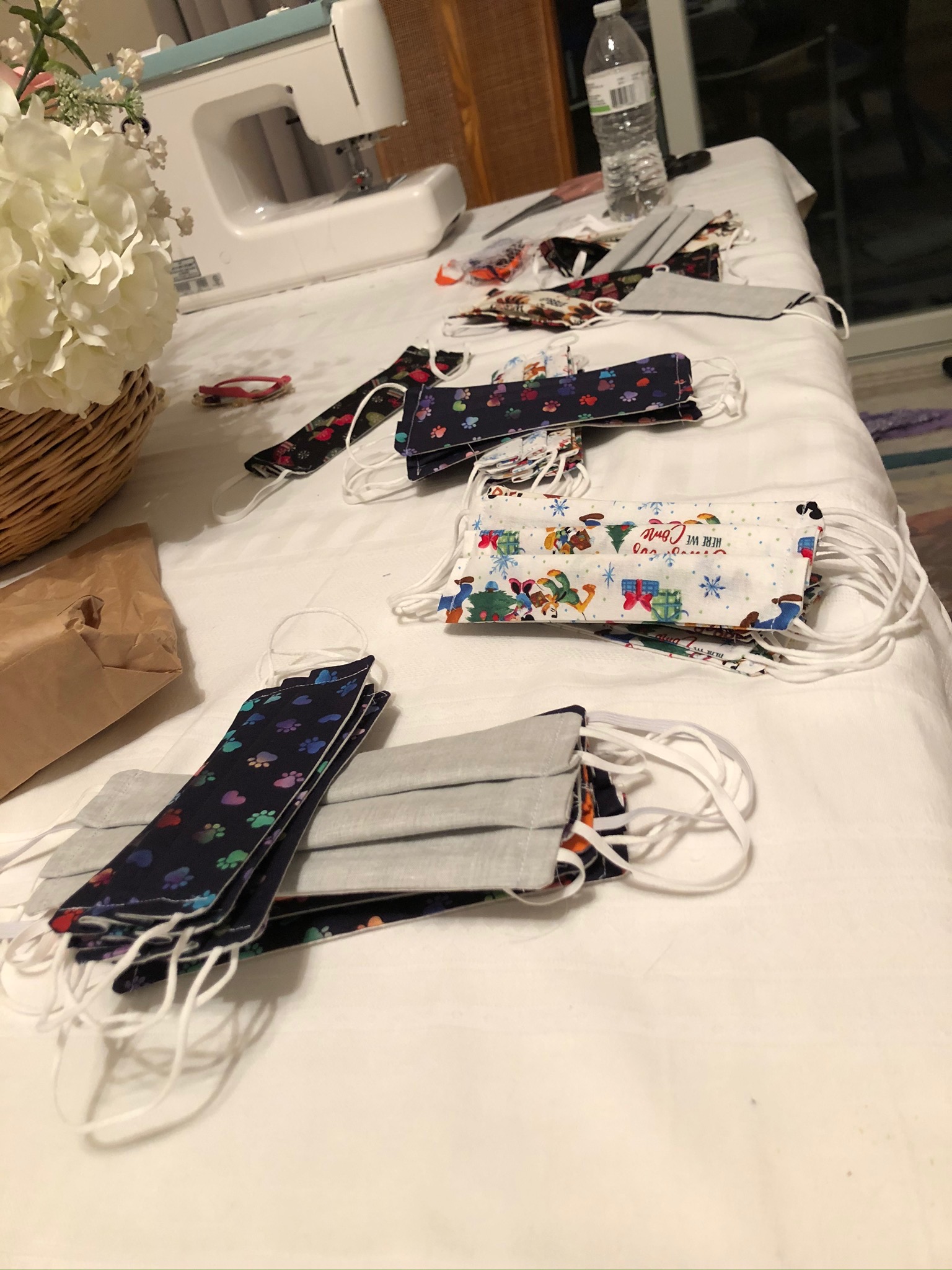 This is an image of the workspace my mom and sister have been working at while creating masks for our family to wear. My sister has also sold a few to coworkers in our school district. This image shows how important masks are in order to stop spreading germs. Wearing a mask is extremely important when going out in public in order to protect yourself and others from COVID-19. My family has made several different kinds of masks. They have made different themed ones, such as Halloween, Thanksgiving, Christmas, and New Year’s, as well as generic ones. They have made different styles, like the pleated surgical-style ones in this photo in addition to the Olson style masks. They have also created different sizes, for the adults in our family and smaller ones for my four nieces. This photo is important to me because it has been very difficult for my siblings to find masks at stores that will fit on kids ages 1-4. They are also more inclined to want to wear a mask because it is something special that my mom has made for them in patterns that they love, like animal, Disney, and holiday prints. I don’t think there is a lot of information out there about parents with young children who are growing up in the time of a pandemic. It can be difficult to leave the house some days to do something as simple as grocery shopping, because kids like to touch everything and don’t always cooperate when wearing a mask. One of the biggest struggles I’ve heard my sister talk about as an elementary school teacher is trying to get her students to keep their masks on. It's really important for people to understand these struggles and help each other out while in the midst of a pandemic.