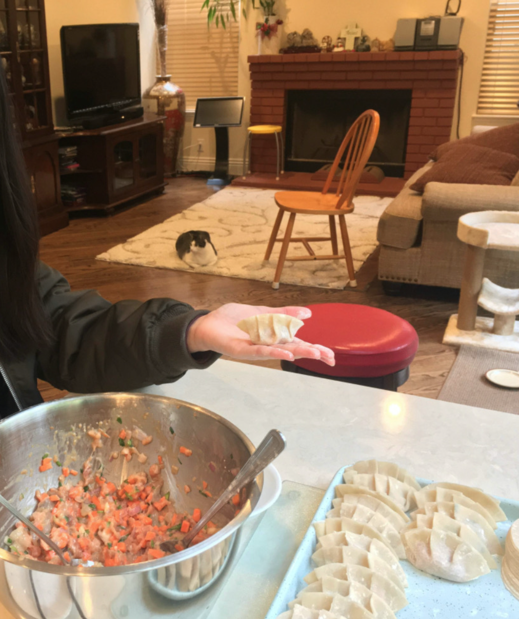 I woke up Saturday morning feeling drained after 12 hours of sleep. As a teenager in the middle of a pandemic, I had nothing to do except to fix a messed up sleep schedule. I got out of bed at 1 PM and decided I would not do anything that day. I was ready to be back in bed and binge Netflix. Suddenly my sister along with my mom and dad and cat burst in my room and told my tired self that we were going to make potstickers. UGH. I told them to go away and that I was busy. An hour later I could smell something coming from the kitchen, something delicious. I could hear my stomach rumbling and I was ready for some food in my belly. I went to the kitchen and saw that the first batch of potstickers were done cooking, they looked perfect! The dough after being pan-fried became crispy and golden brown, and the inside was warm and flavorful. I wanted to help make more (so I could eat more) and turns out, folding potstickers is not as easy as it looks. In comparison with the rest of my family’s, my folded potstickers looked like a total disaster. At least it still tasted good! I didn’t watch Netflix for the rest of the day and I’m glad I didn’t. The time I spent with my family that day will forever be part of me and I hope my family in the future will make even more memories together.