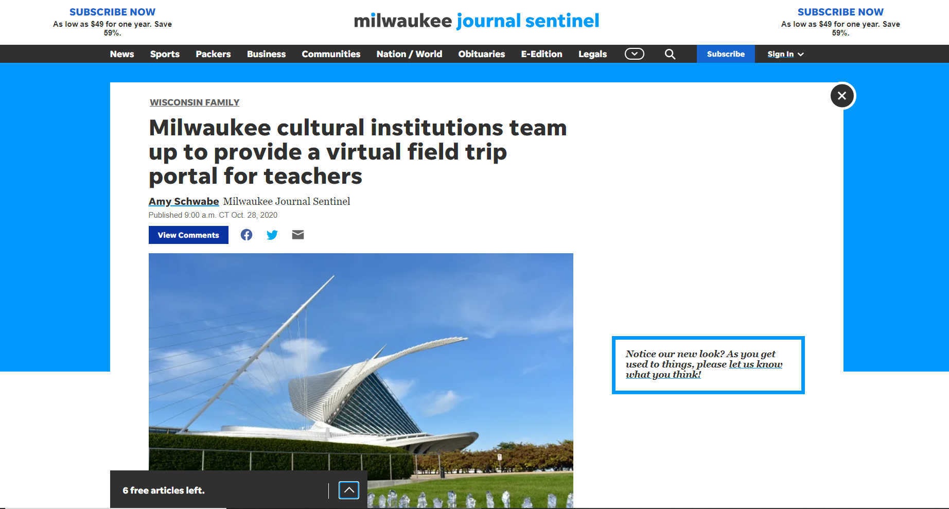 Milwaukee cultural institutions team up to provide a virtual field trip portal for teachers