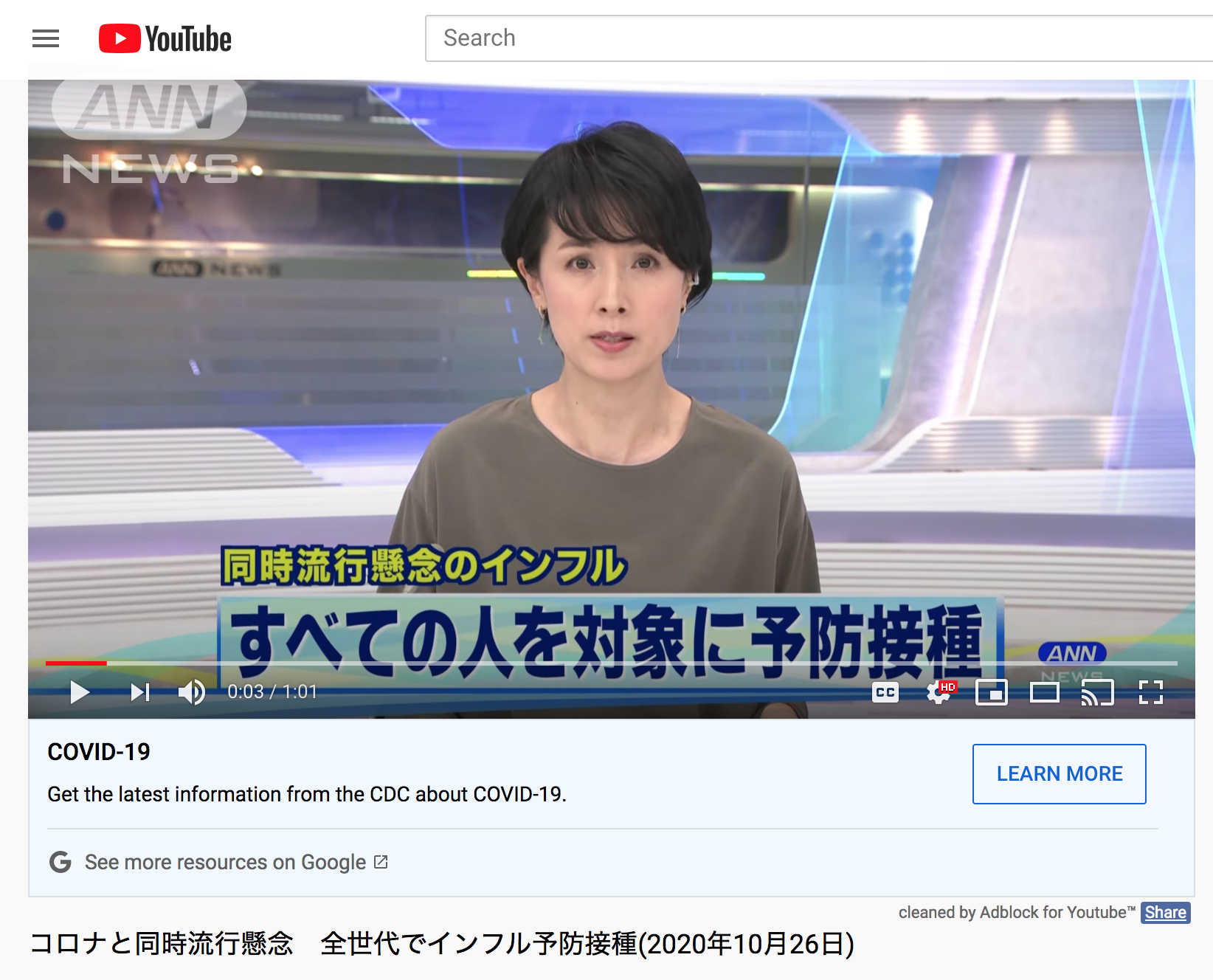 コロナと同時流行懸念 全世代でインフル予防接種(2020年10月26日) - Concerns about simultaneous spread with corona Influenza vaccination for all age group (October 26, 2020)