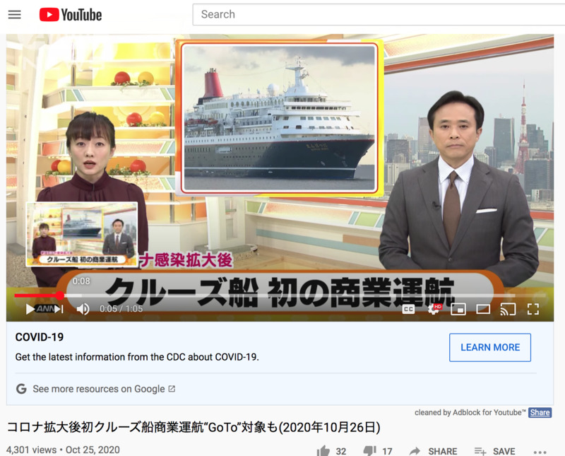 コロナ拡大後初クルーズ船商業運航“GoTo”対象も(2020年10月26日) - First cruise ship commercial operation "GoTo" Travel Campaign after the spread of coronavirus(October 26, 2020)