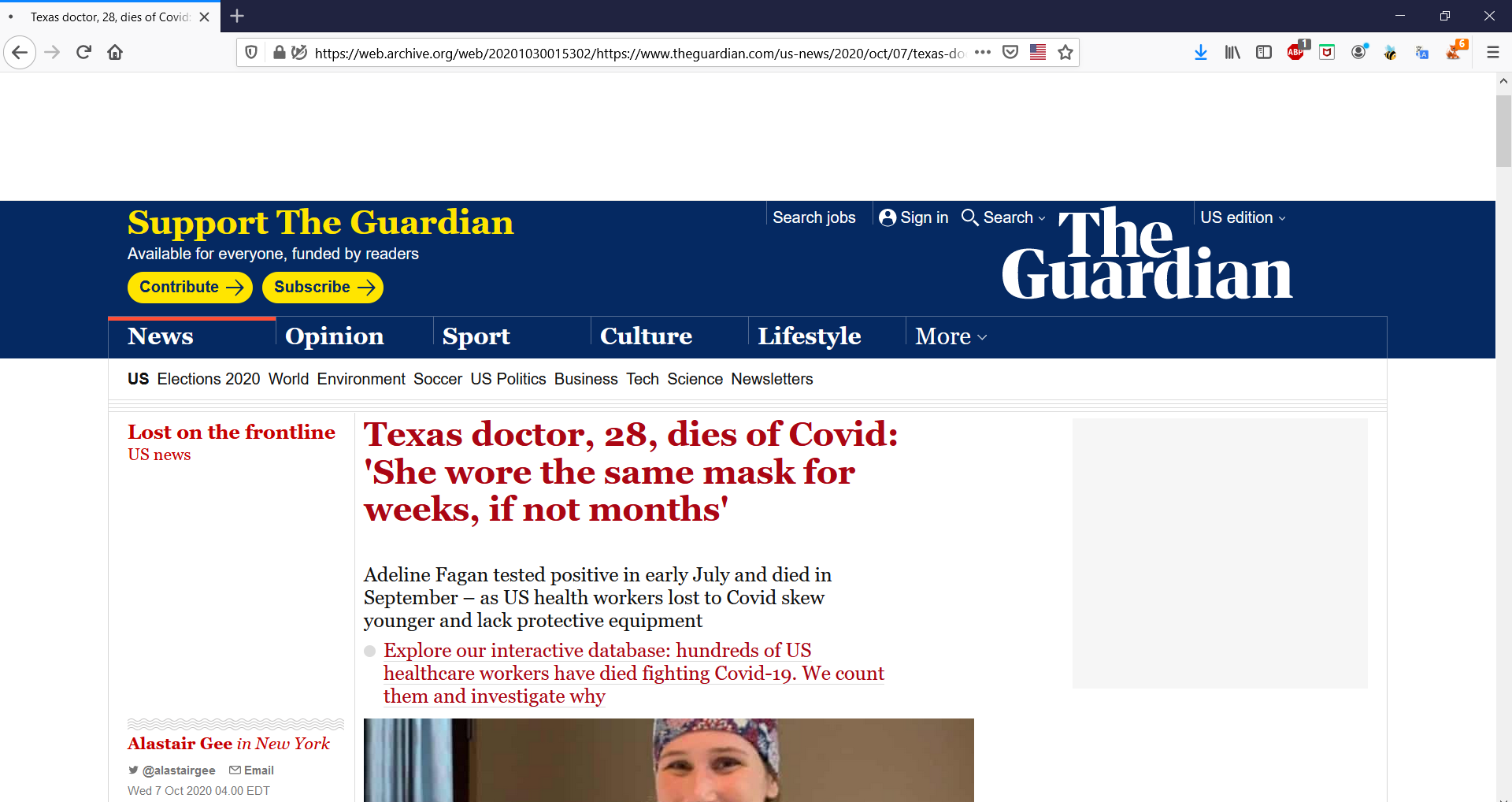 This doctor worked in the emergency department at a hospital and refused PPE repeatedly because there was such a shortage of it. The article addresses the fact that so many medical professionals have died because of inadequate PPE.