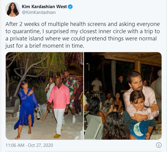 Kim Kardashian Receives Backlash over COVID-19 Vacation Tweet