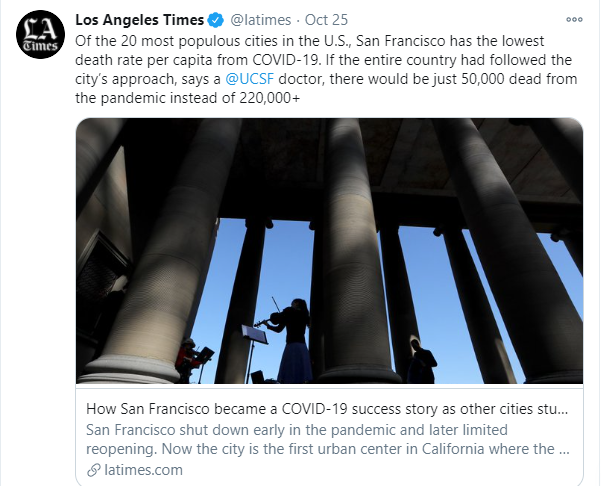 San Francisco is Leader in Slowing the Spread of COVID-19