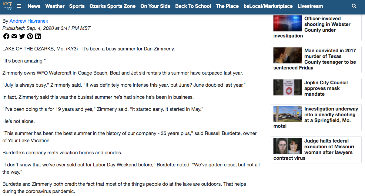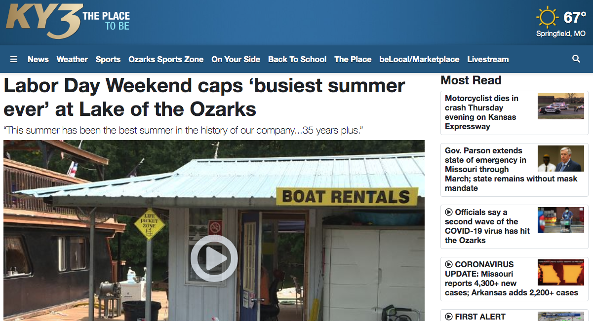 This shows that a large number of people traveled to summer tourist destinations that were open. There were more visitors to the Lake of the Ozarks during the pandemic than there was in 2019.