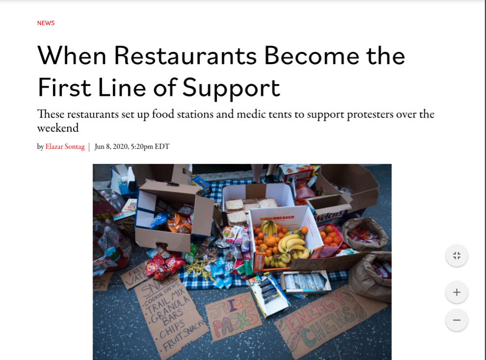 During the BLM protests this past summer, many restaurants supported the protestors by providing free food, and acknowledging that the damage to their property was less important than the damage being done to Black people by police. They also performed support tasks such as hosting makeshift medic tents for the protestors.