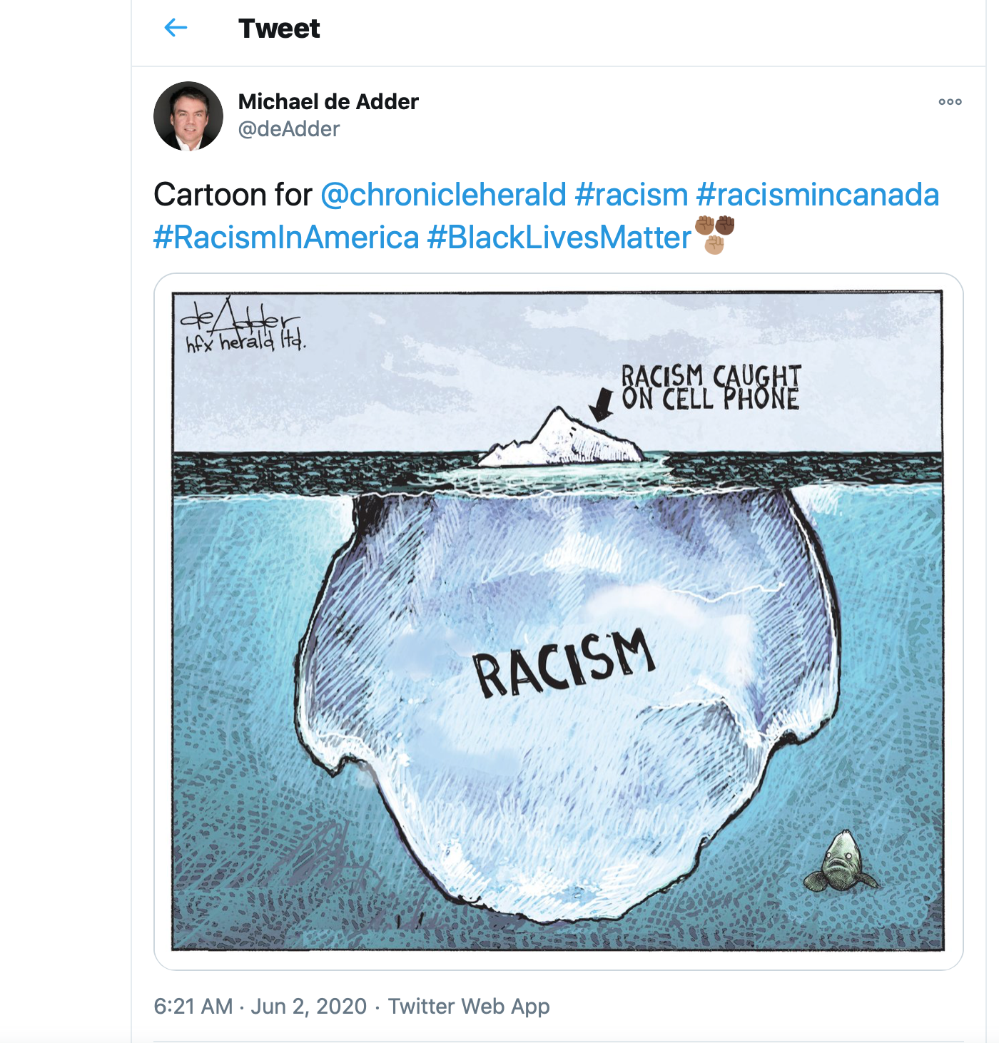 Cartoon posted on Twitter featured in the Chronicle Herald.