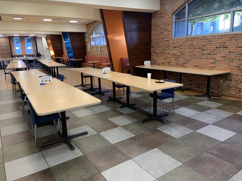 As a resident student at St. Mary's University I have eaten in the DiamondBack Cafe almost every day, and I can attest to just how different it is to eat a meal there. The seats are now all socially distanced six feet apart, and there are signs sitting on the tables and taped to the tables reminding students to keep their social distance. Along with the changes implemented because of social distancing, getting meals has also changed drastically.