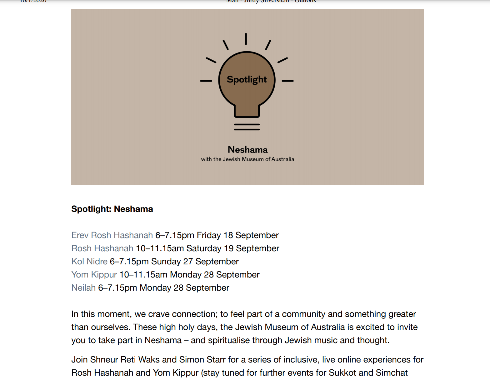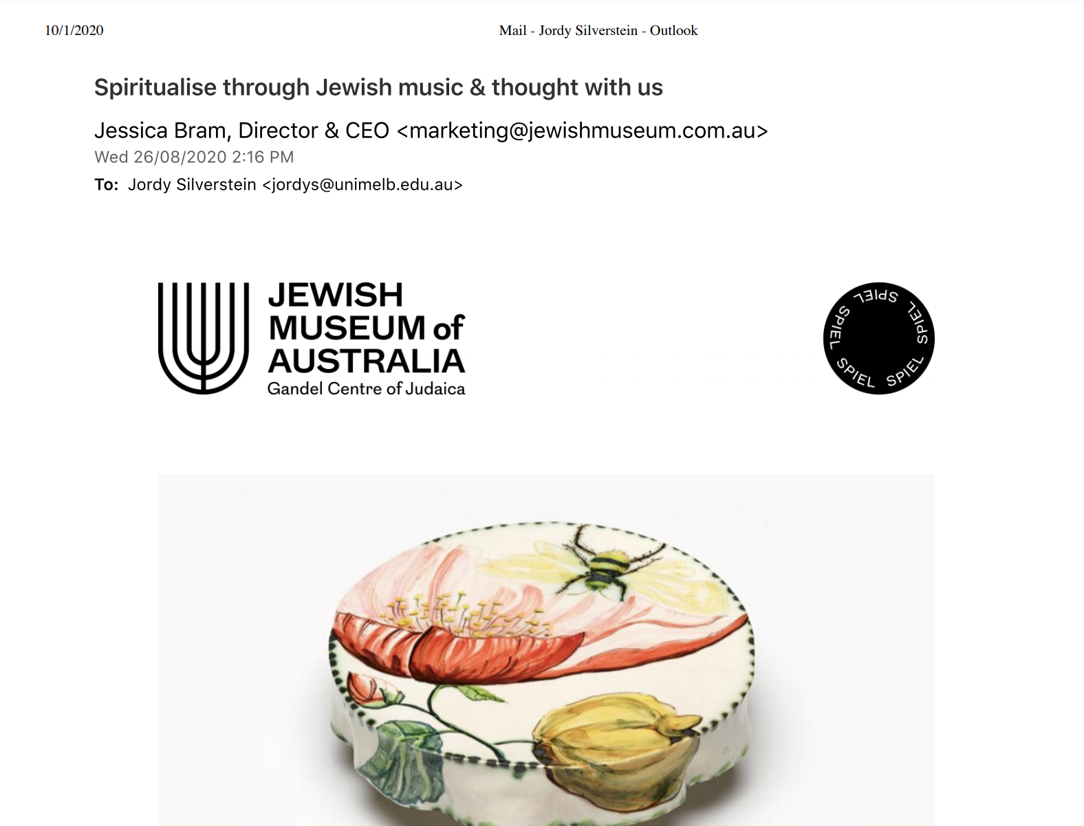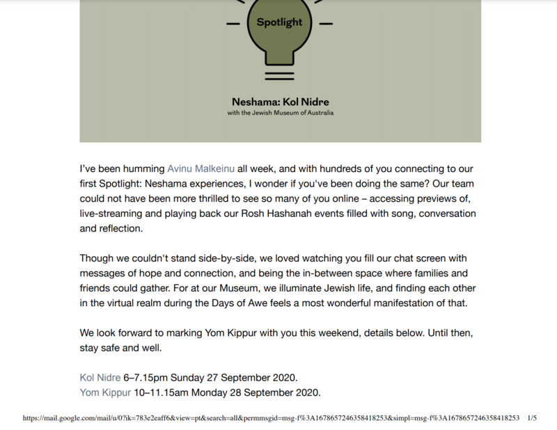 Jewish Melbourne: Jewish Museum of Australia's emails about online events
