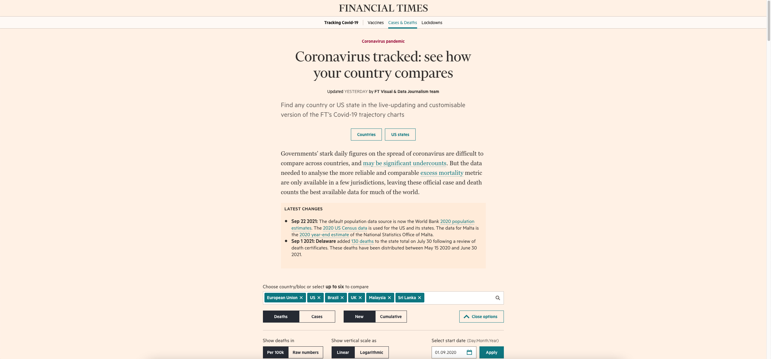This graph illustrates unfortunately the differences in the handling of the Pandemic. When I created this I chose six industrialized nations They have a total of 346 million residents, according to Google. Also according to Google the United States has a population of 331 million residents. Five of the six nations appear on the graph below the figure for the United States. Taiwan did not have enough cases despite a population of 23.5 million to register on the bottom of the graph. So that is six industrialized nations for 77 thousand deaths versus 200 thousand deaths in the United States alone and growing at the world's fastest rate of infection. This is important to me because it illustrates the failure of our government to take the Pandemic seriously enough.