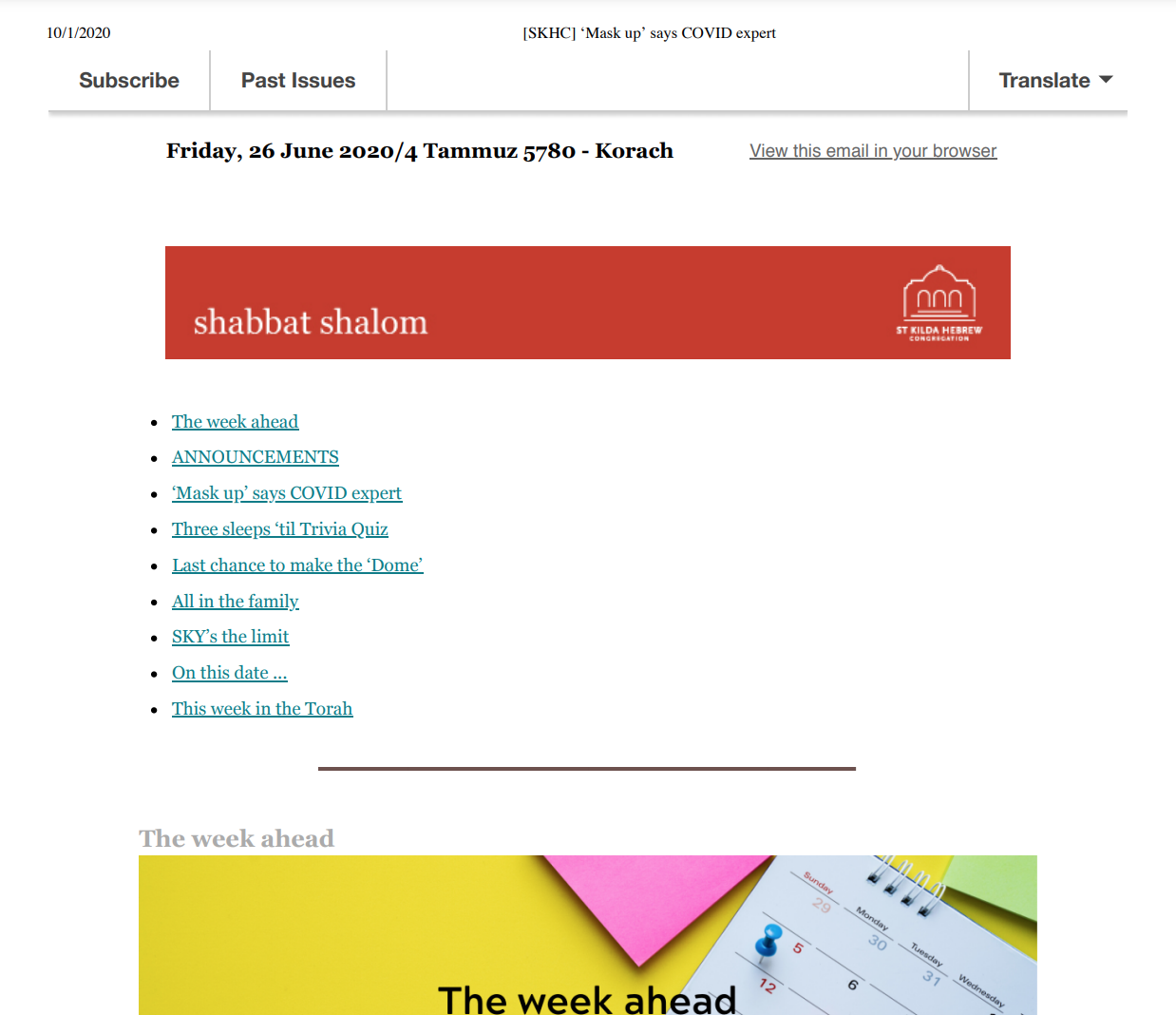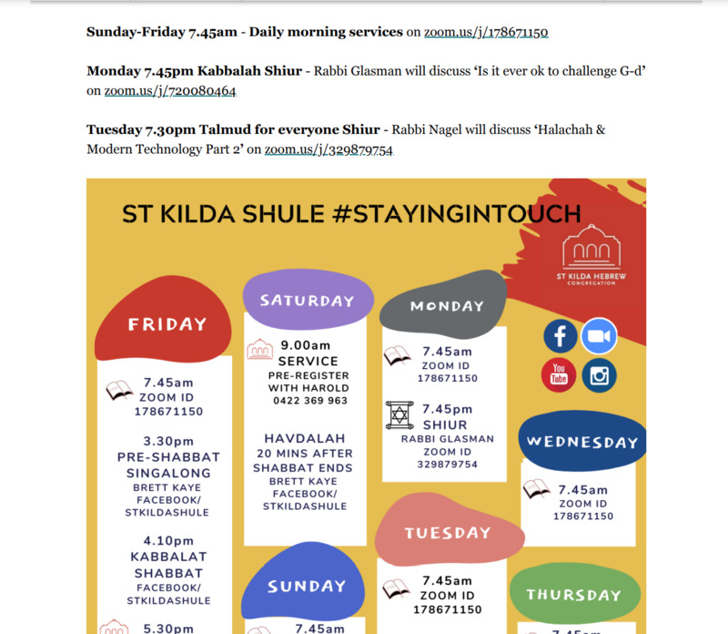 Jewish Melbourne: St Kilda Hebrew Congregation newsletter update 26 June