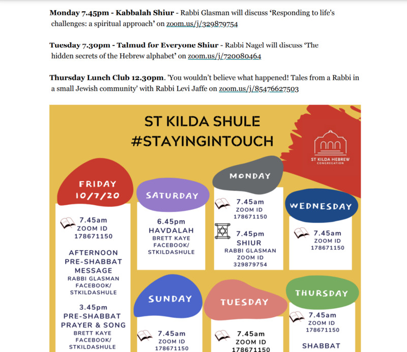 Jewish Melbourne: St Kilda Hebrew Congregation newsletter update 10 July