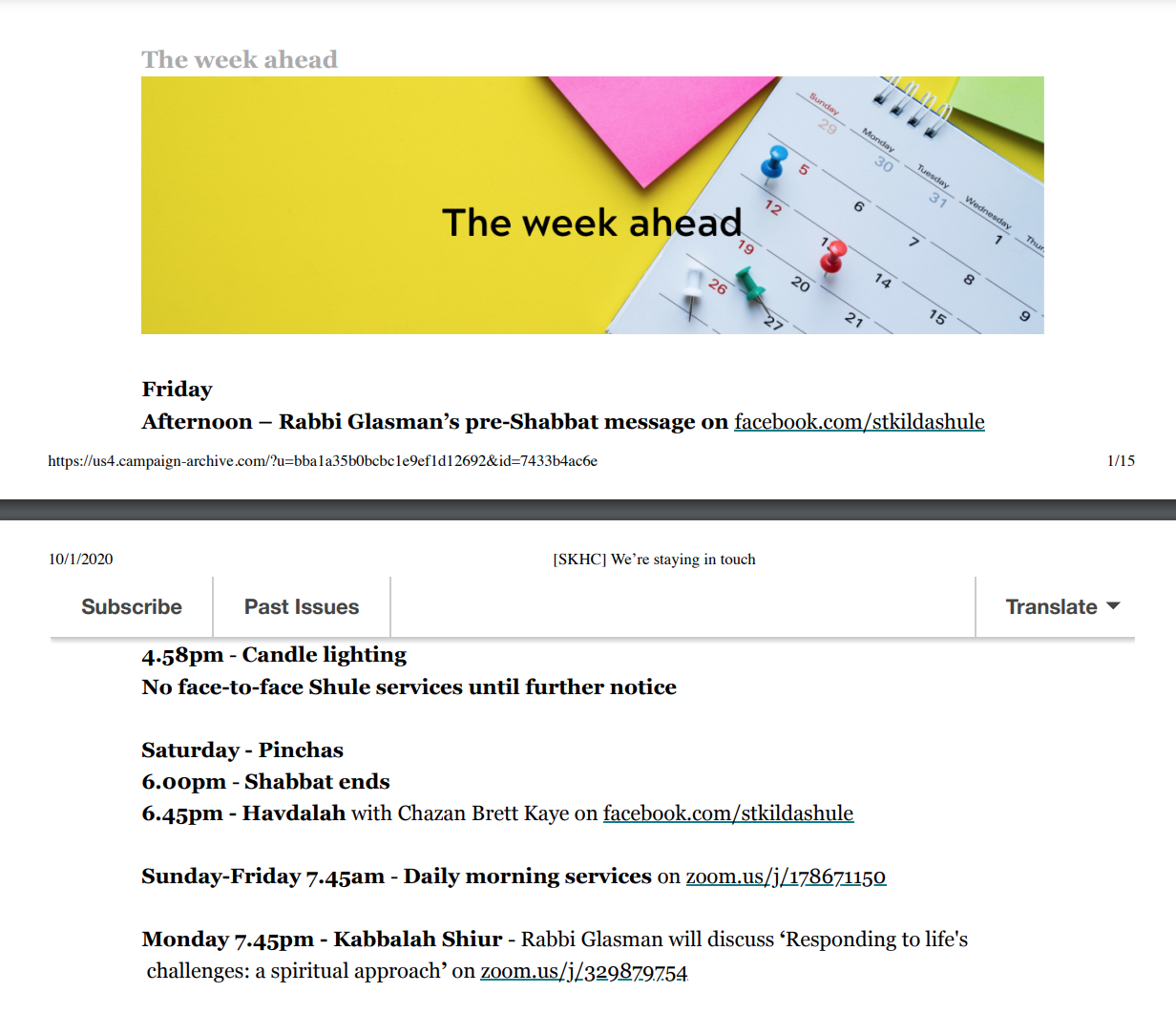 St Kilda Hebrew Congregation provides an email update to their congregation, sharing a message from the Rabbi about lockdown, as well as information about observing yahrzeit and saying kaddish while locked down.