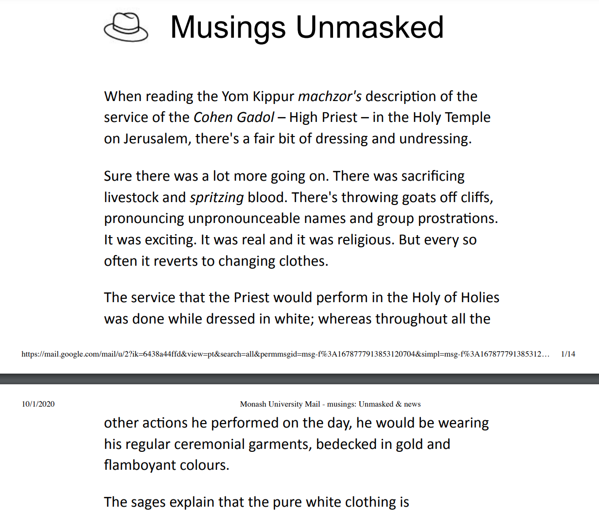 In this newsletter from Chabad Kingston & Moorabbin shul, they discuss the upcoming holiday of Yom Kippur and provide details of virtual events which will bring the community together in the lead-up.