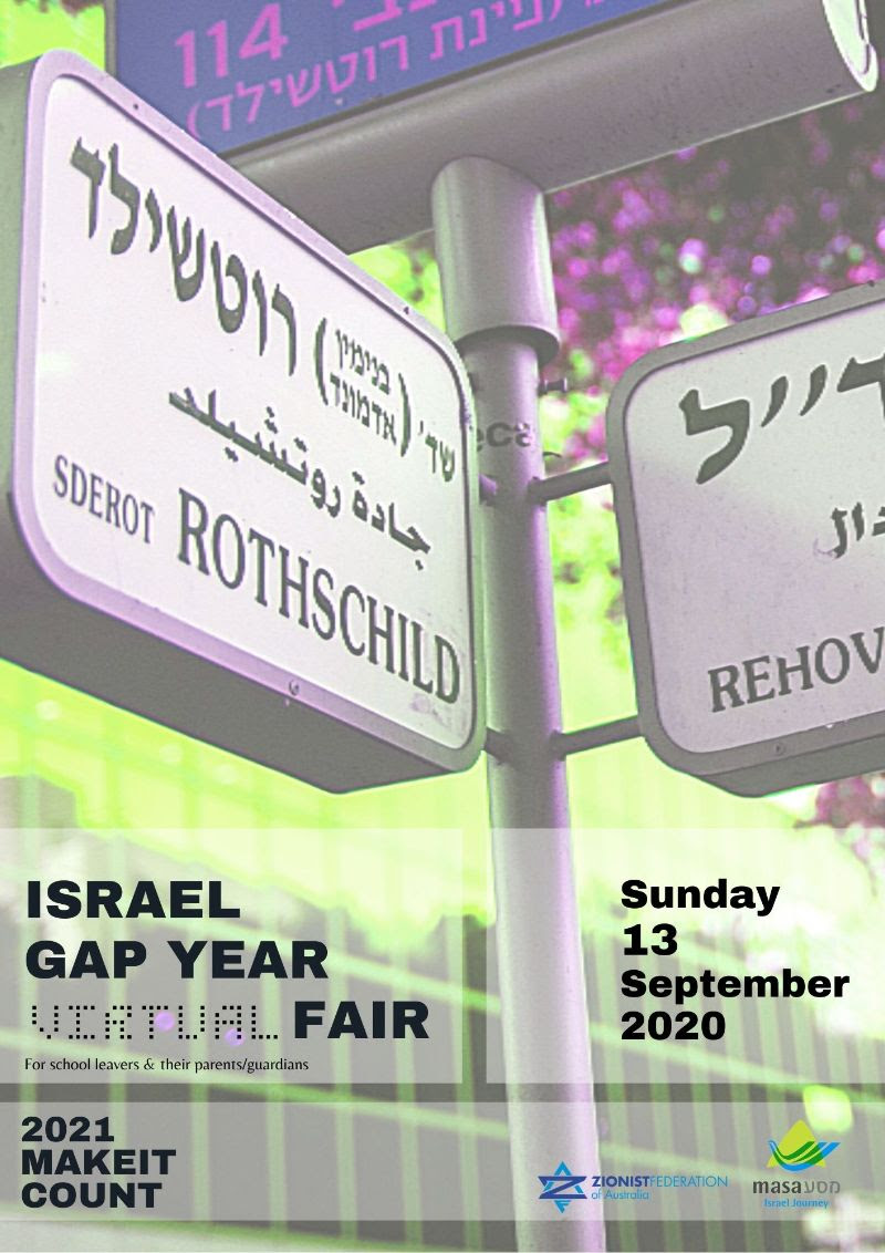 Information from MASA and ZFA, in ZFA's weekly newsletter, about a "virtual info Gap Year Fair showcasing all the Israel Gap Year options available in 2021." These sessions were planned for 13 and 14 September.