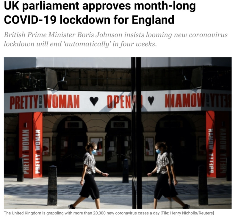 As COVID-19 ramps up in the UK, the government had to implement another lockdown. Parliament put the official stamp on it. I wonder who the 38 people against were?