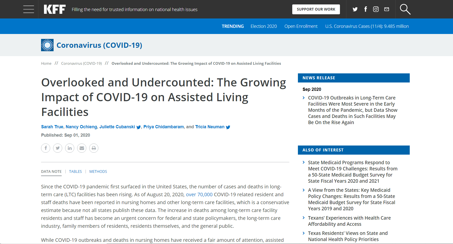 Overlooked and Undercounted: The Growing Impact of COVID-19 on Assisted Living Facilities